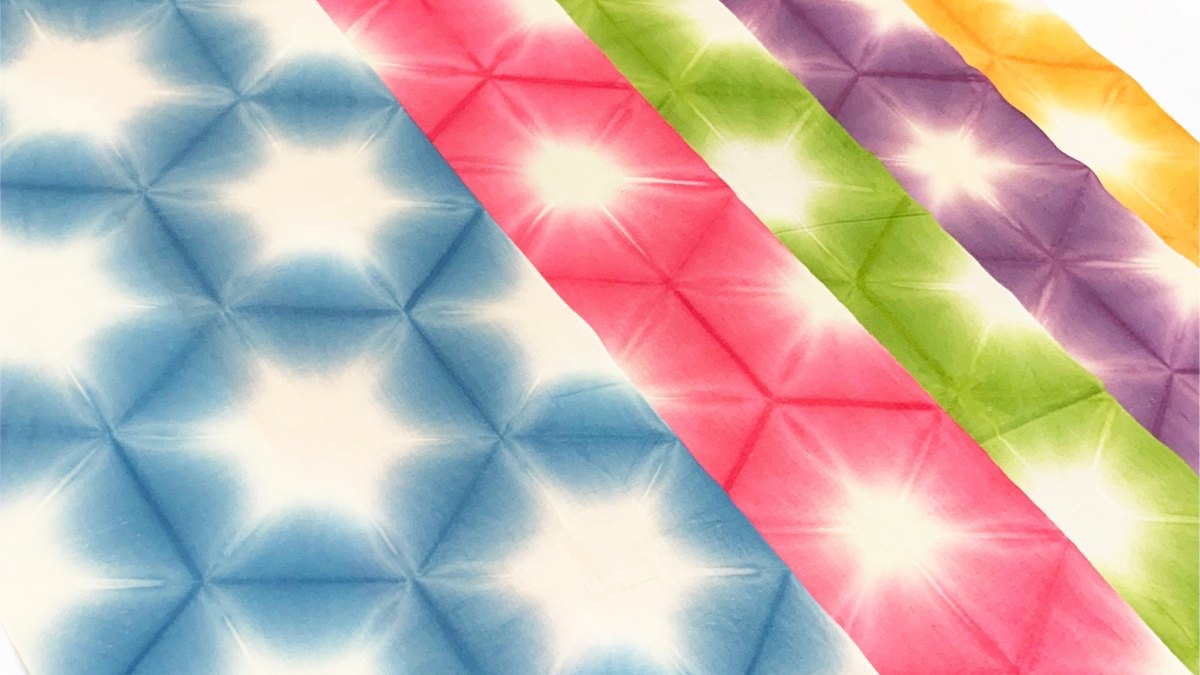 『板締め絞り』は「はさんで染める△さんかくふじさん」という方法で、オリジナルてぬぐいを作る体験コース。
