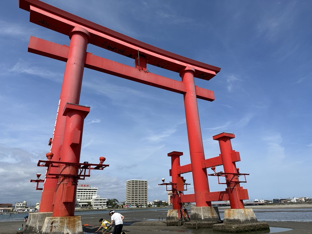 ・舞阪町シンボルタワー(赤鳥居)と記念撮影