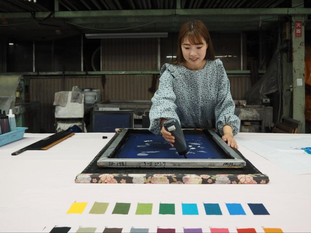 「捺染そめ」の1つである『手捺染』では、約8万通りの染料・生地・柄の組み合わせから、あなただけのオリジナル・ハンカチが作成できます。