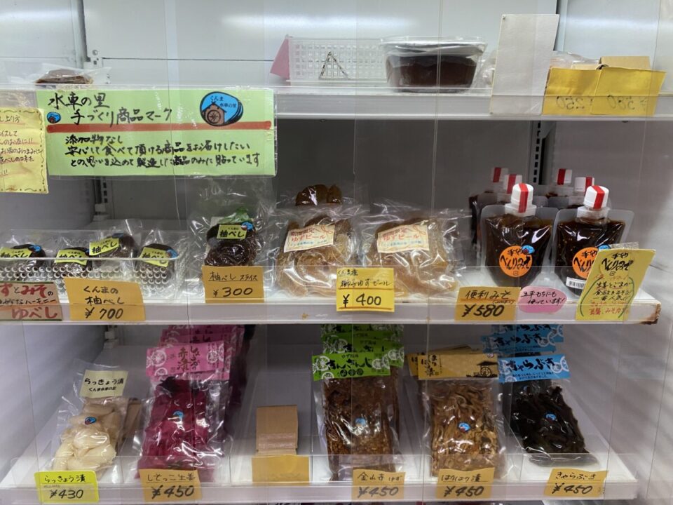 「物産館ぶらっと」には自家製のこんにゃくやお饅頭、味噌や漬物など、くんまのおかあさんたちが心を込めて手作りした商品が並びます。