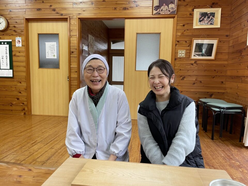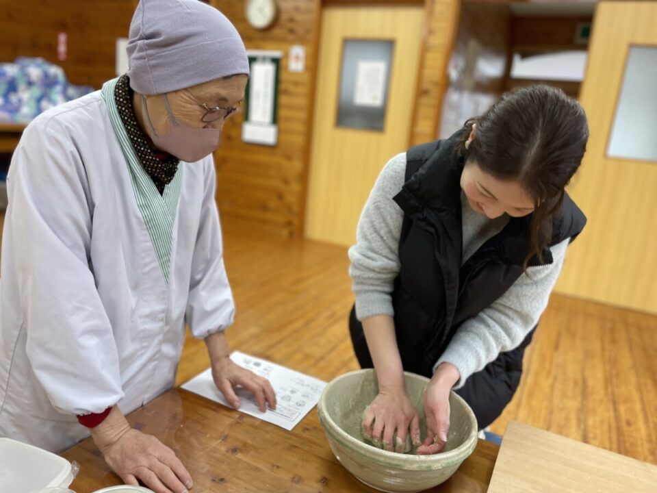 くんまのおかあさんを代表してそば打ちを教えてくれたのは、たかはしさん(写真左)。