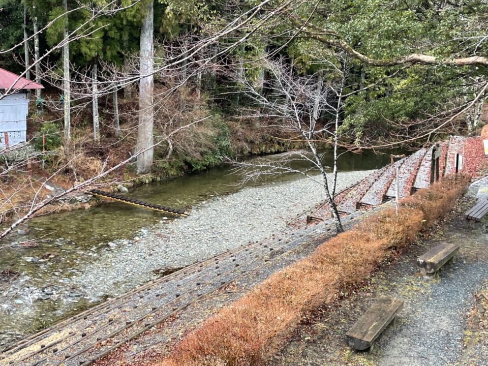 夏は阿多古川で川遊びする人で賑わう「道の駅 くんま水車の里」。浅瀬なので小さなお子様も安心して遊べますよ♪