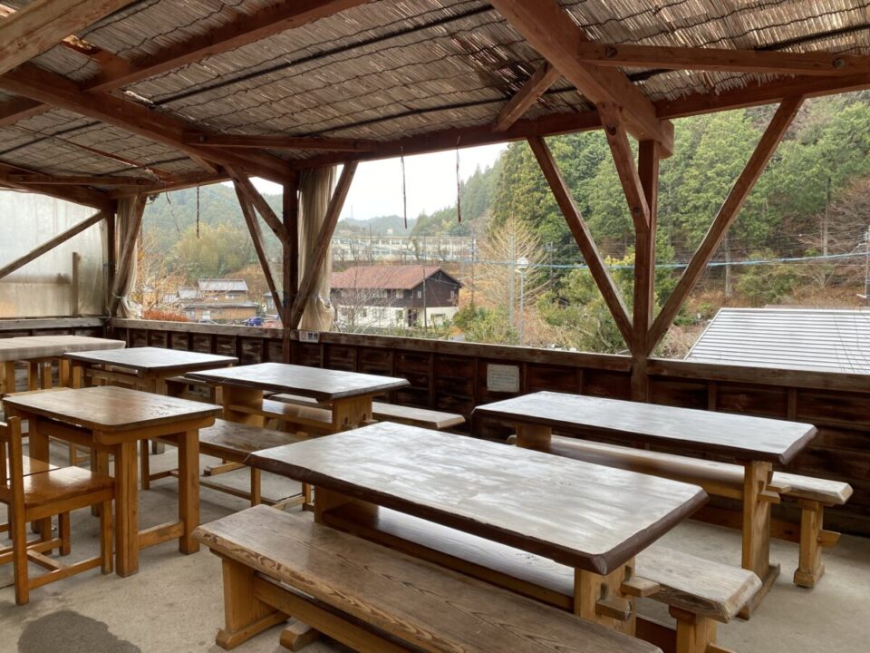 駐車場の脇にある「体験工房ふれあいの家」でそば打ち体験・五平餅づくり体験・こんにゃくづくり体験をおこなっています。