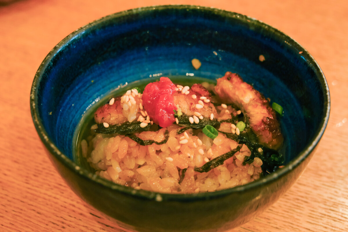最後は、あたたかい昆布だしをかけてお茶漬けに。