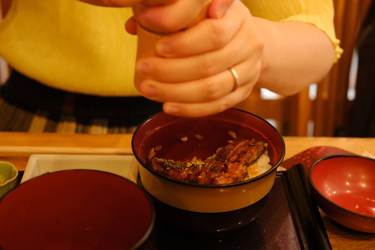 さて、ここで山椒をひと振り。うなぎには山椒が欠かせないという方も多いのではないでしょうか?