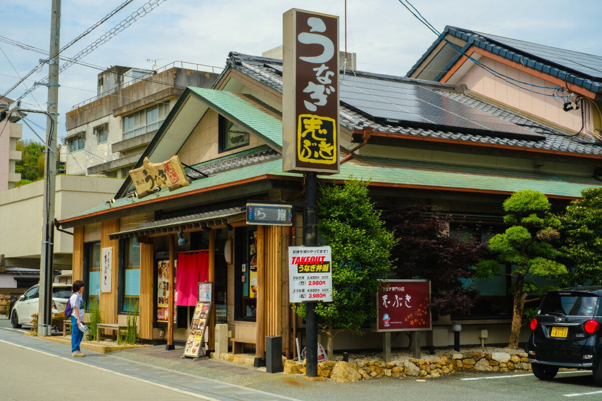 舘山寺門前通りは、うなぎの名店が並ぶ人気エリア。