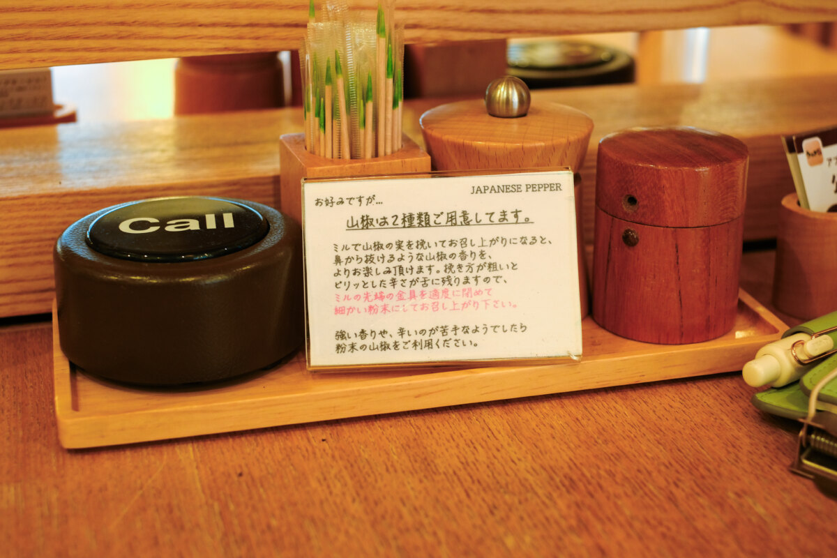 うなぎ専門の店 志ぶきでは、粉の山椒と、自分で挽く山椒の2種類が用意されています。