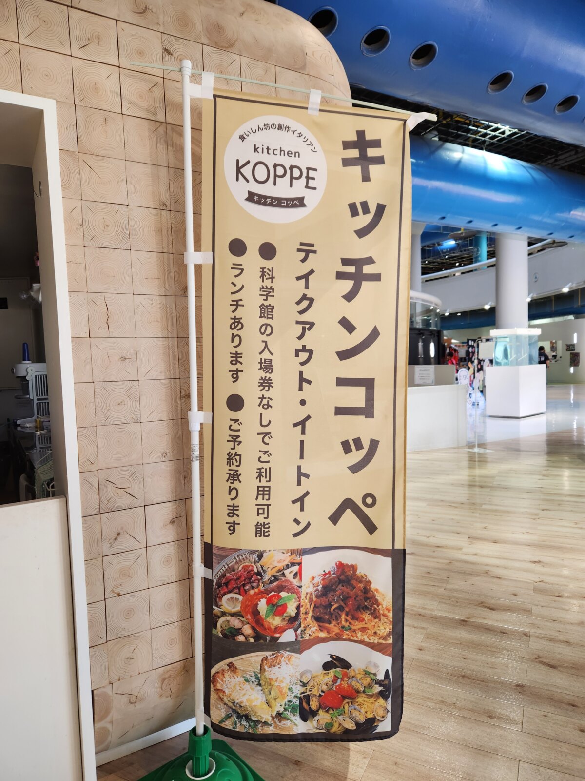 科学館の入場券無しでも利用できるカフェです。もちもちの生麺を使用したパスタが人気メニュー。