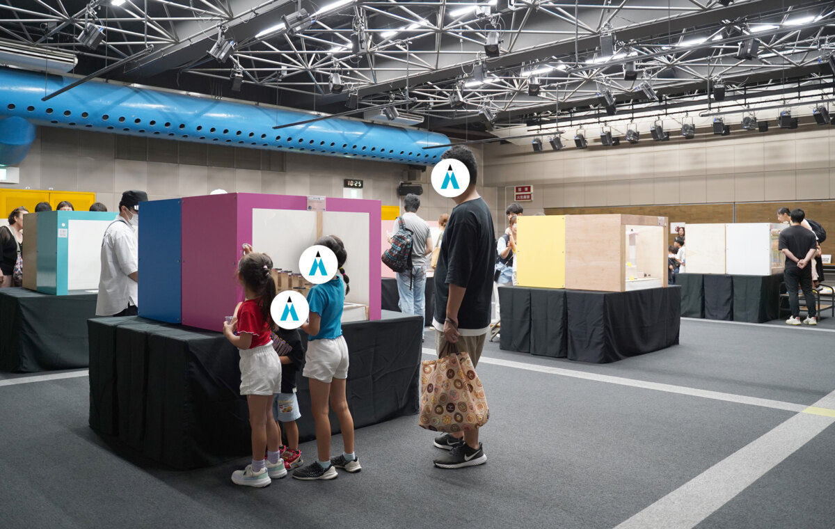 職員さん力作のビーコロブースが約20点あり、ビー玉を転がす時のスピードなどで玉がどのように動くのかは自分次第。