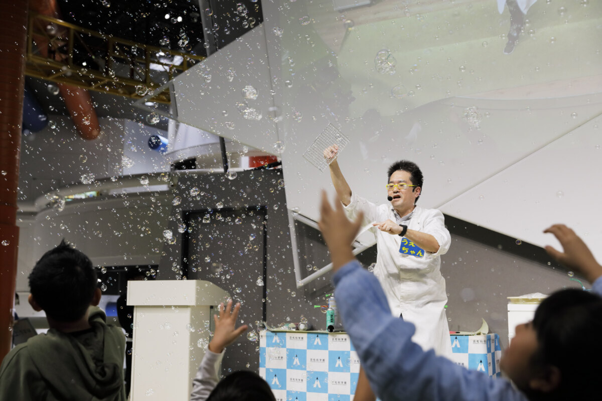 科学のプロ「サイエンスチーム」のみなさんが考案したサイエンスショーは、科学の魅力や不思議、面白さを間近でみられる大人気のショー。