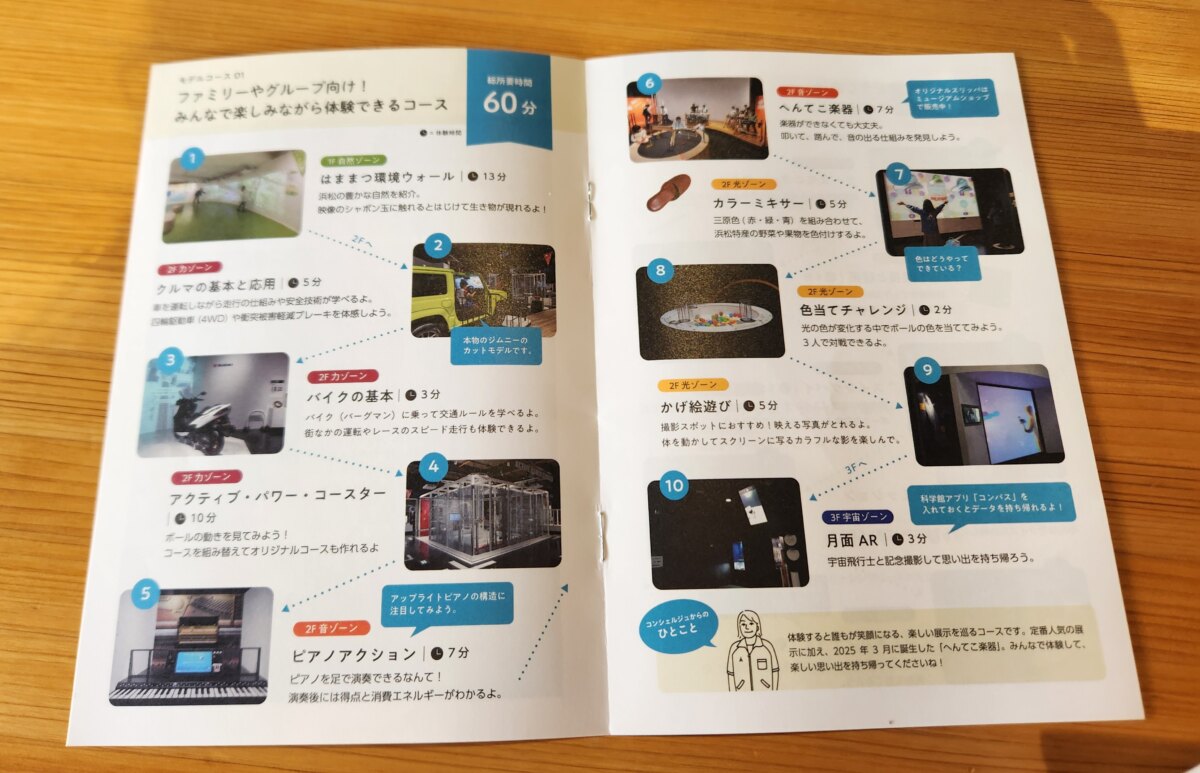 スタッフさんおススメコースが記載されている「浜松科学館展示モデルコース」が2025年7月から配布されています。