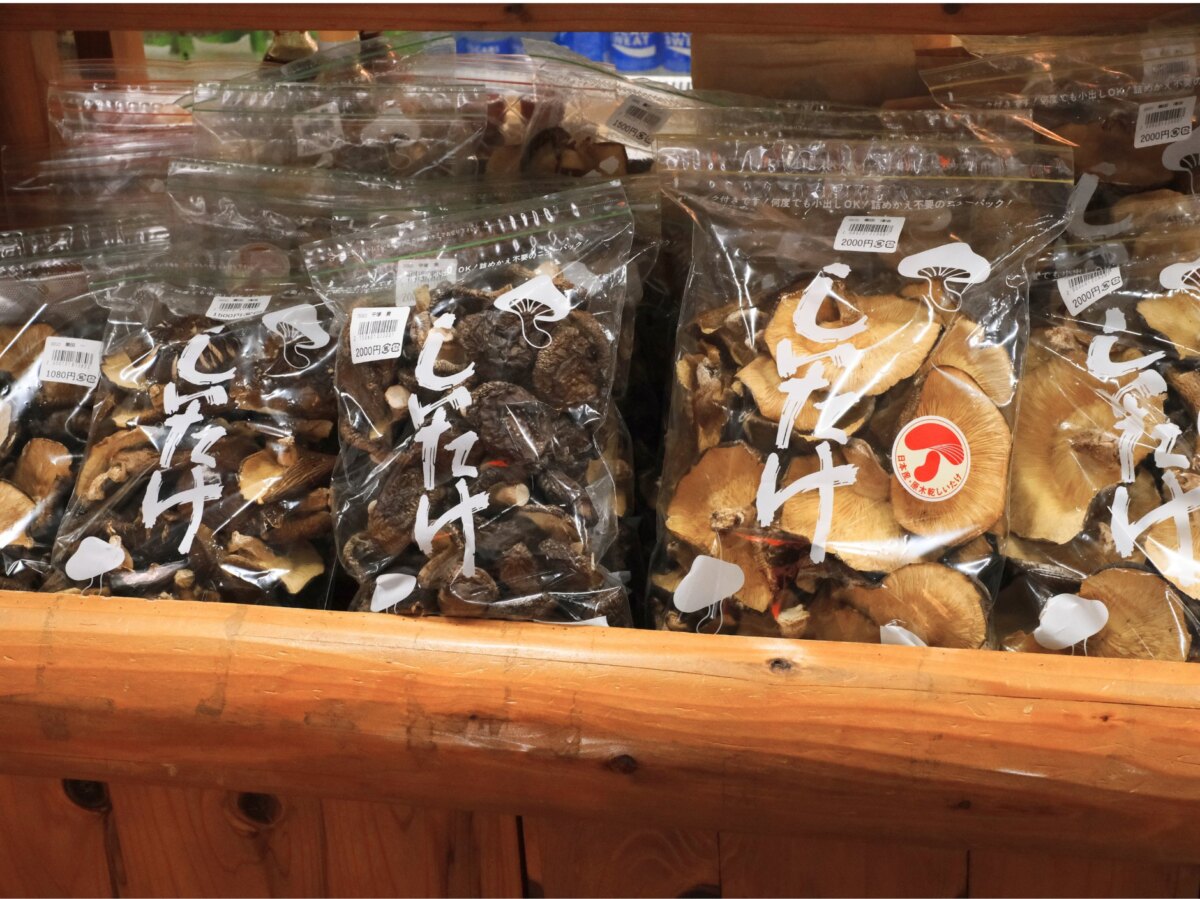 最初に目に入ったのは、天竜特産品の「シイタケ」。天竜は、肉厚で美味しいシイタケが育つのに適した土地なんです。原木100%栽培にこだわった美味しいシイタケが購入できますよ。