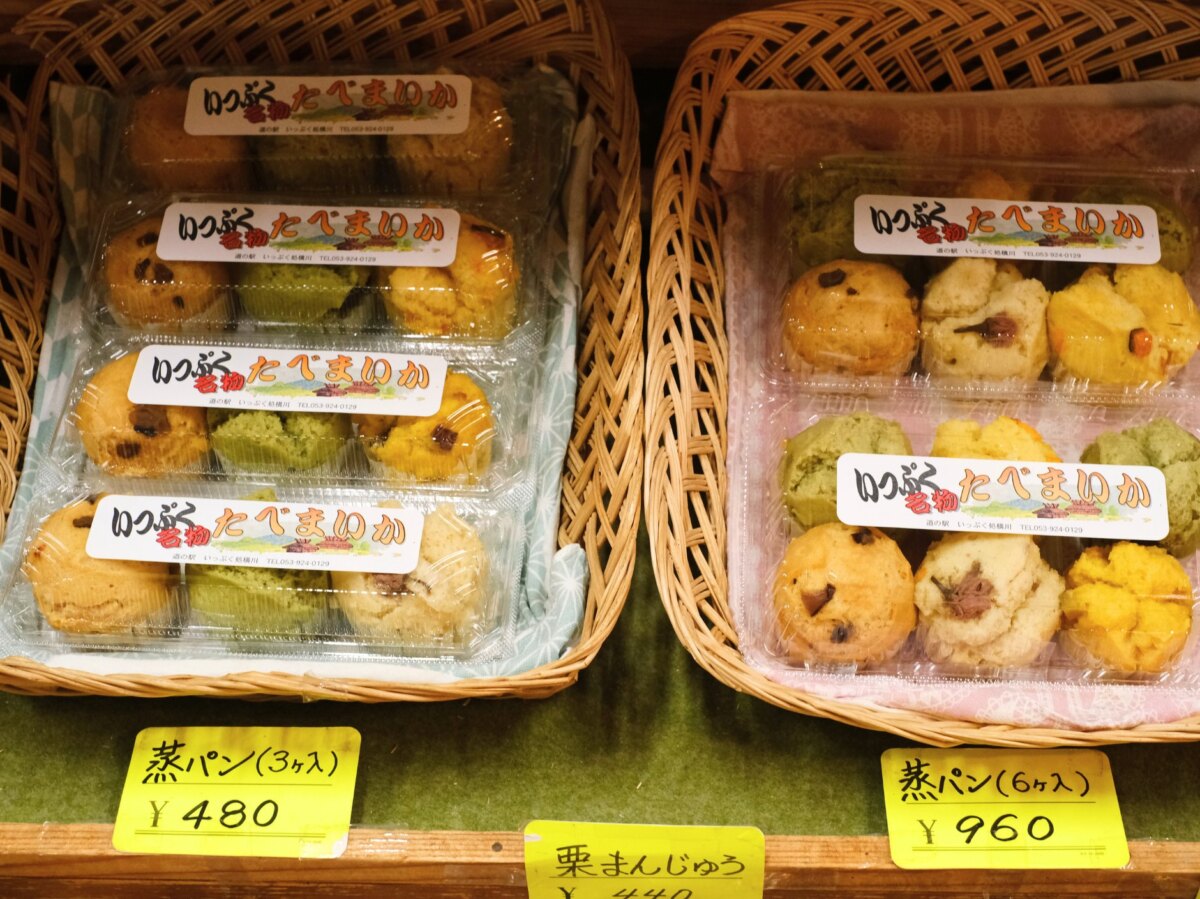 シイタケの他にも、地元のお母さんたちが作る手作りの蒸しパンや草餅、限定のしいたけ餃子も人気なんだとか。