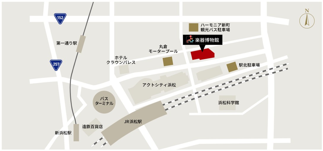 今回訪れたのは、JR浜松駅北口より徒歩10分の「浜松市楽器博物館」です。