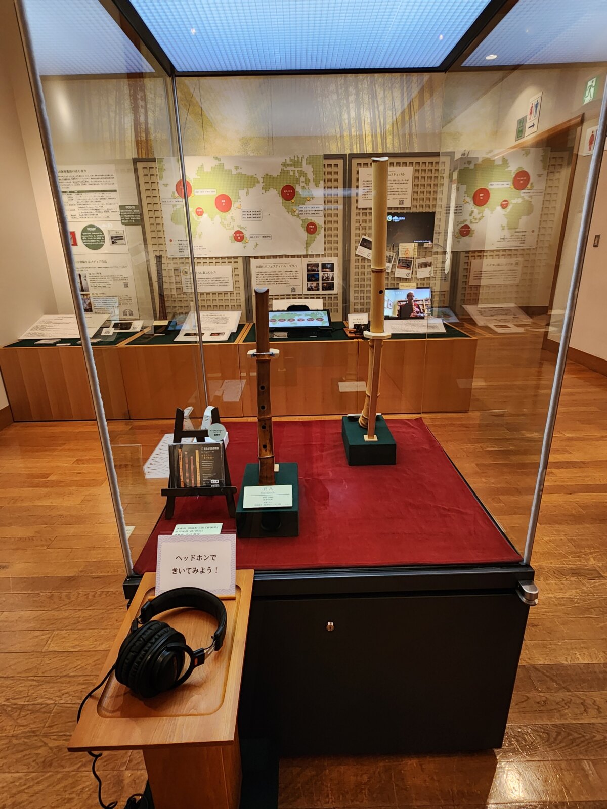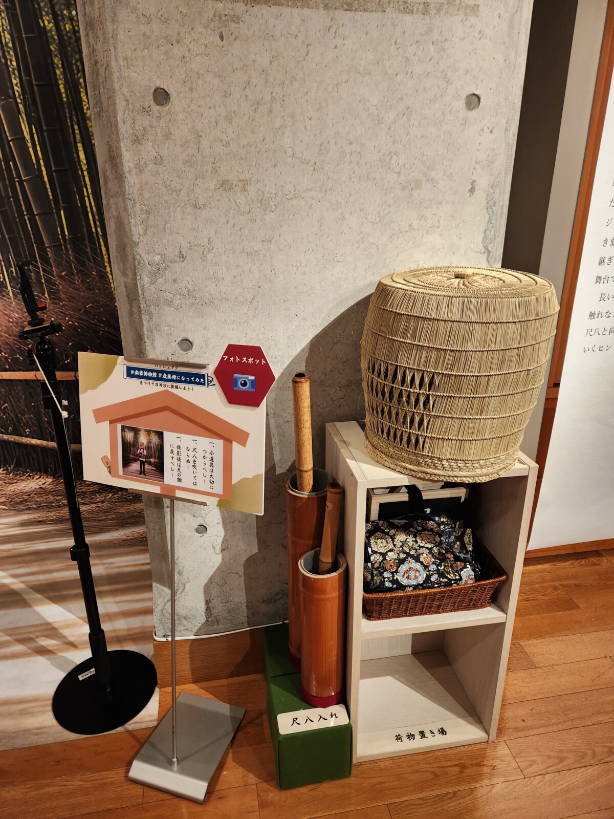 2025年11月30日まで特別展「尺八」~竹がつなぐ和のひびき~を開催しています。日本の伝統楽器「尺八」の魅力がたくさんつまった特別展。尺八と天蓋の小道具を使って虚無層になりきり写真を撮影するスポットもあります。