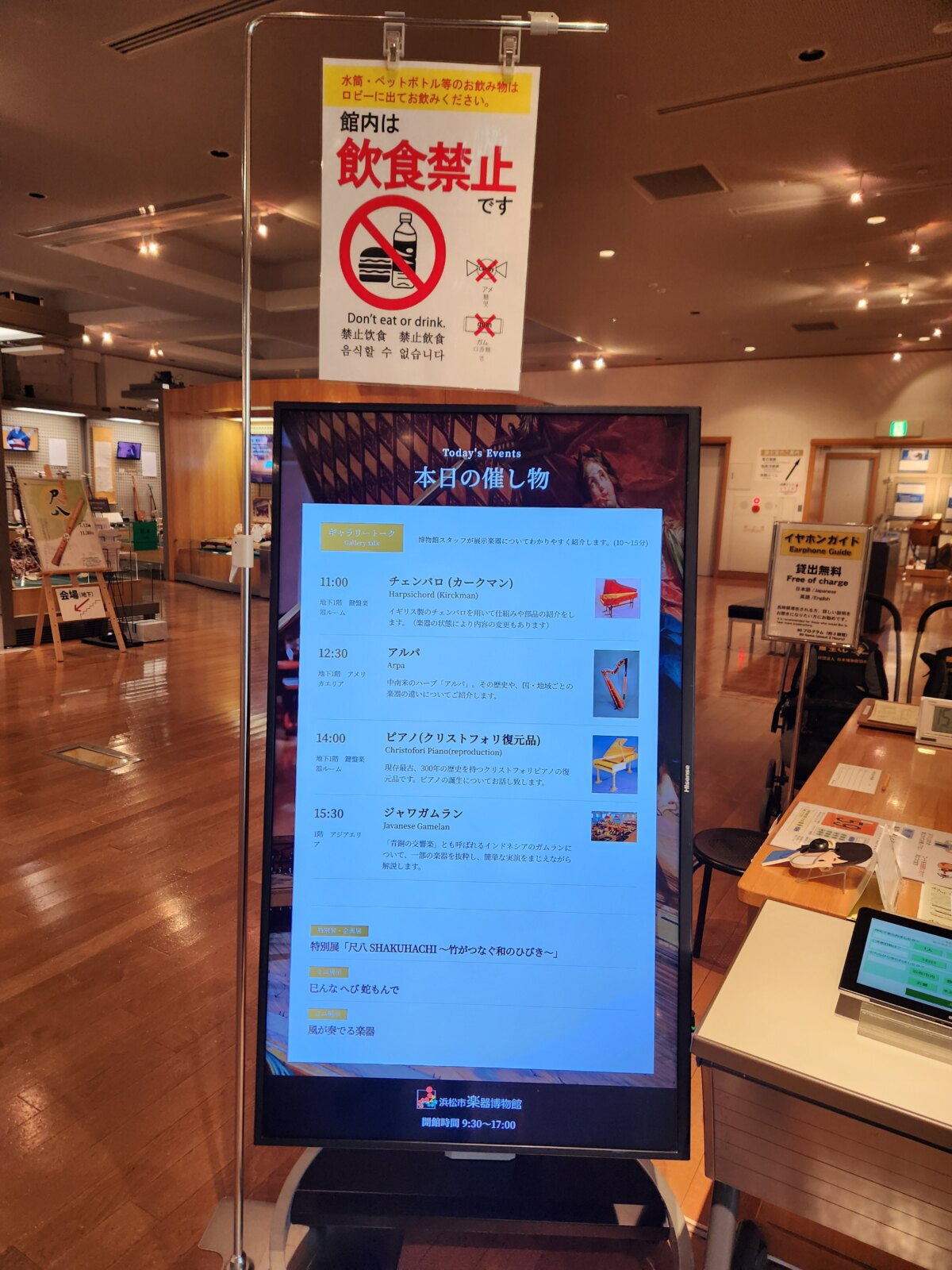 楽器の演奏方法、歴史、音階など興味深い話がきけましたよ。開催内容は入口にタイムスケジュールがありますので確認してみてくださいね!