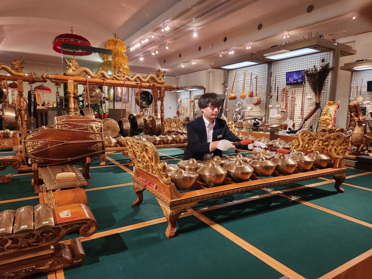 取材日は入口左手にあるインドネシアの楽器「ジャワガムラン」の解説でした。