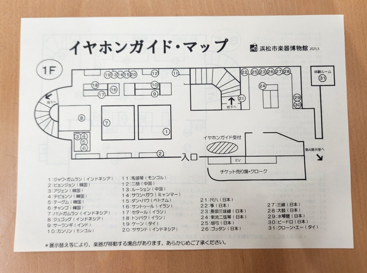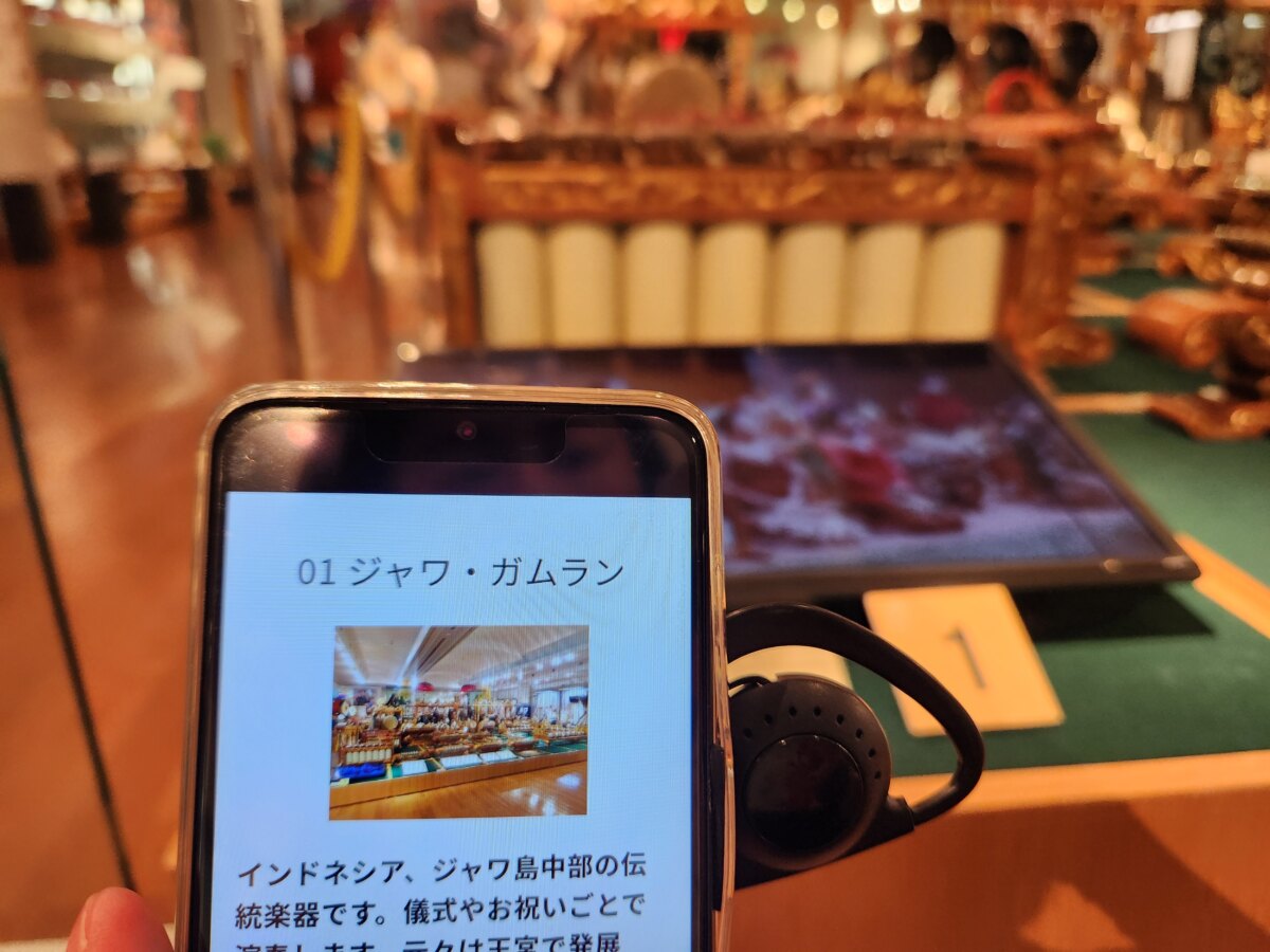 イヤホンガイドには、浜松市楽器博物館内の80タイトルが収録されており、楽器の解説と音色を聴くことが可能です。