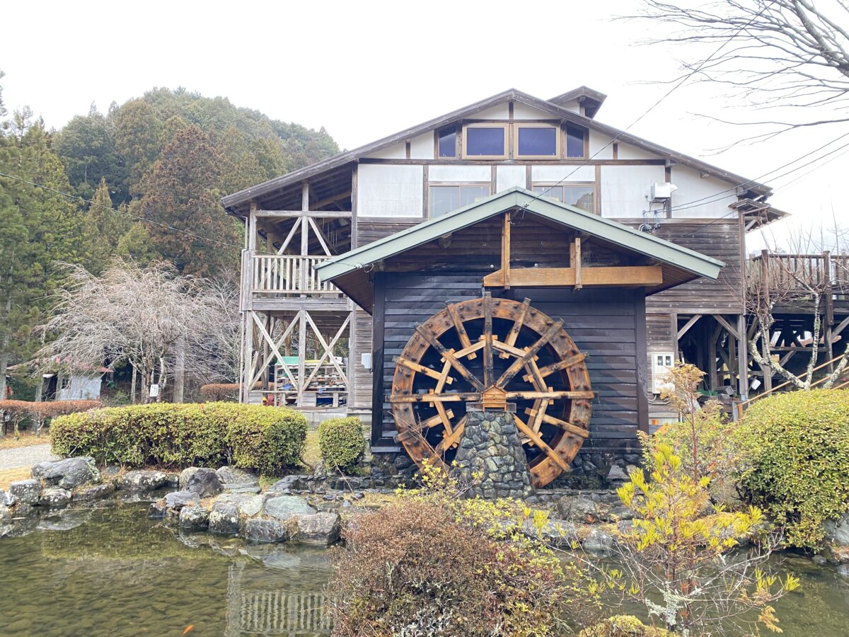 「くんま水車の里」は、阿多古川のほとりに広がる里山にある道の駅。入口に立つ大きな水車小屋が目印で、昔懐かしい山里の雰囲気が漂います。