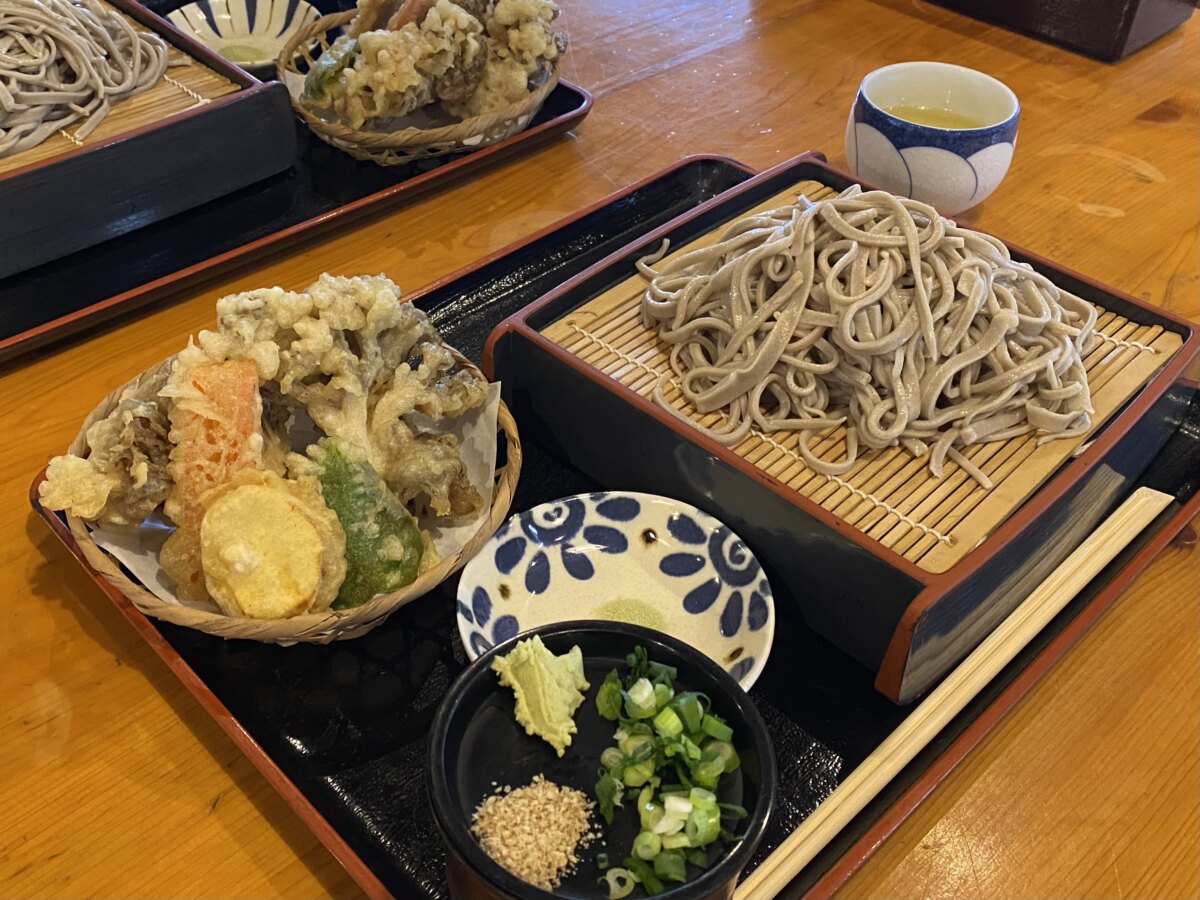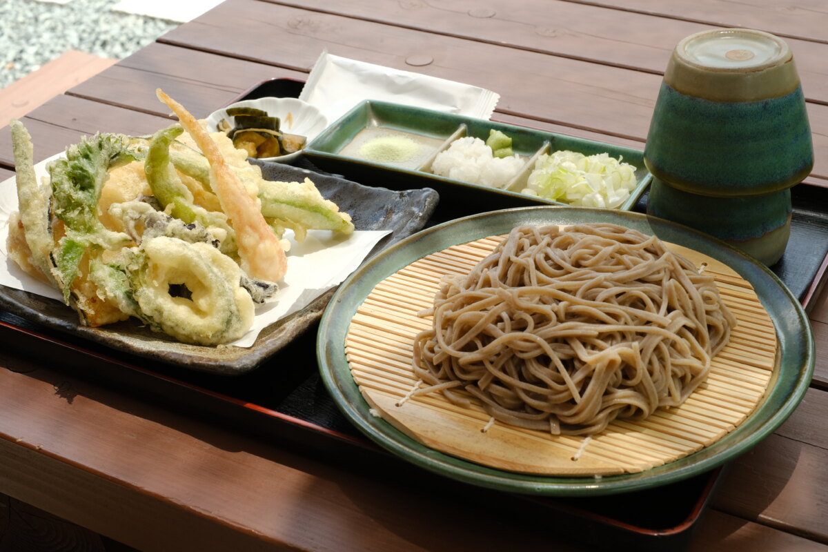 食事処では、しいたけの旨みを生かしたそばやうどん、季節の天ぷらなど地元ならではの料理を堪能できます。