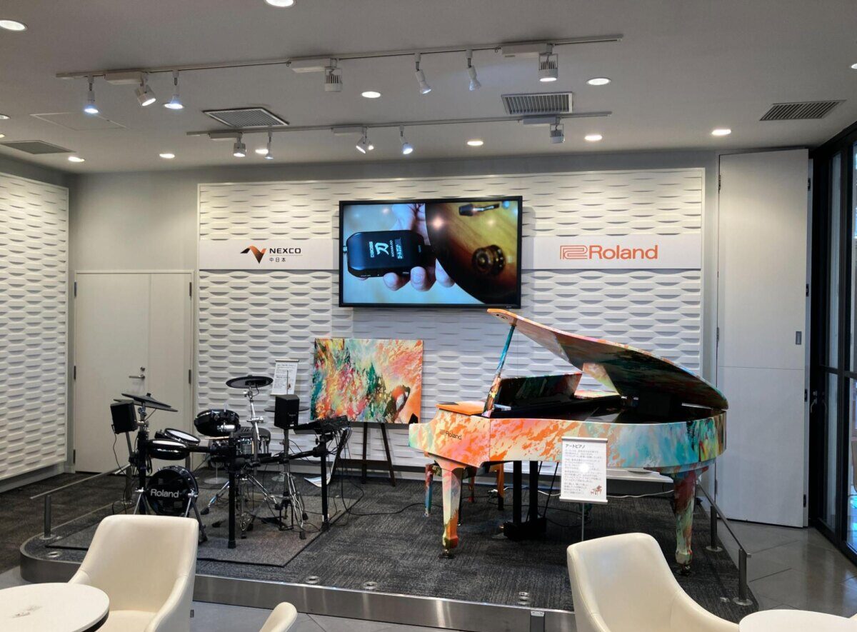新東名高速道路にある浜松SAは、上下線ともに「音楽の街・浜松」を体感できるスポットです。館内には、浜松を代表する音楽メーカー・YAMAHAやローランドの楽器展示コーナーがあり、小さなお子さんから大人まで、気軽に音楽と触れ合うことができます。