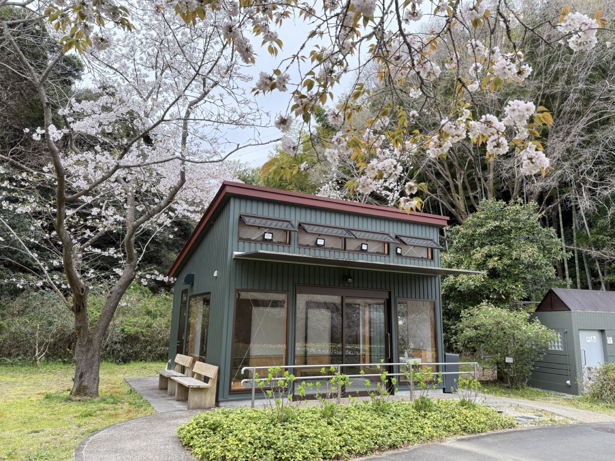 桜の咲く季節の芝生は茶色が多いのが一般的ですが、はままつフラワーパークは洋芝の種を撒いているため、青々とした芝生になっています。