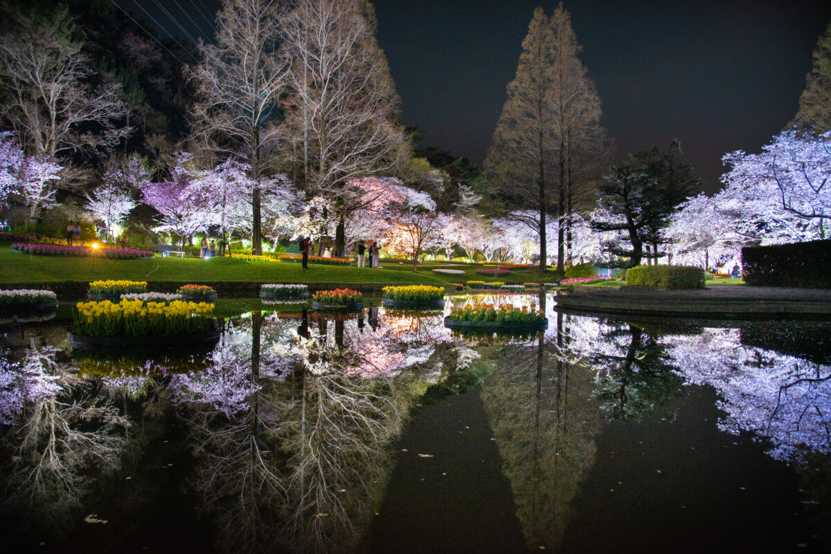 1300本の桜とチューリップが織りなす春の夜の幻想的な世界をお楽しみいただけます。