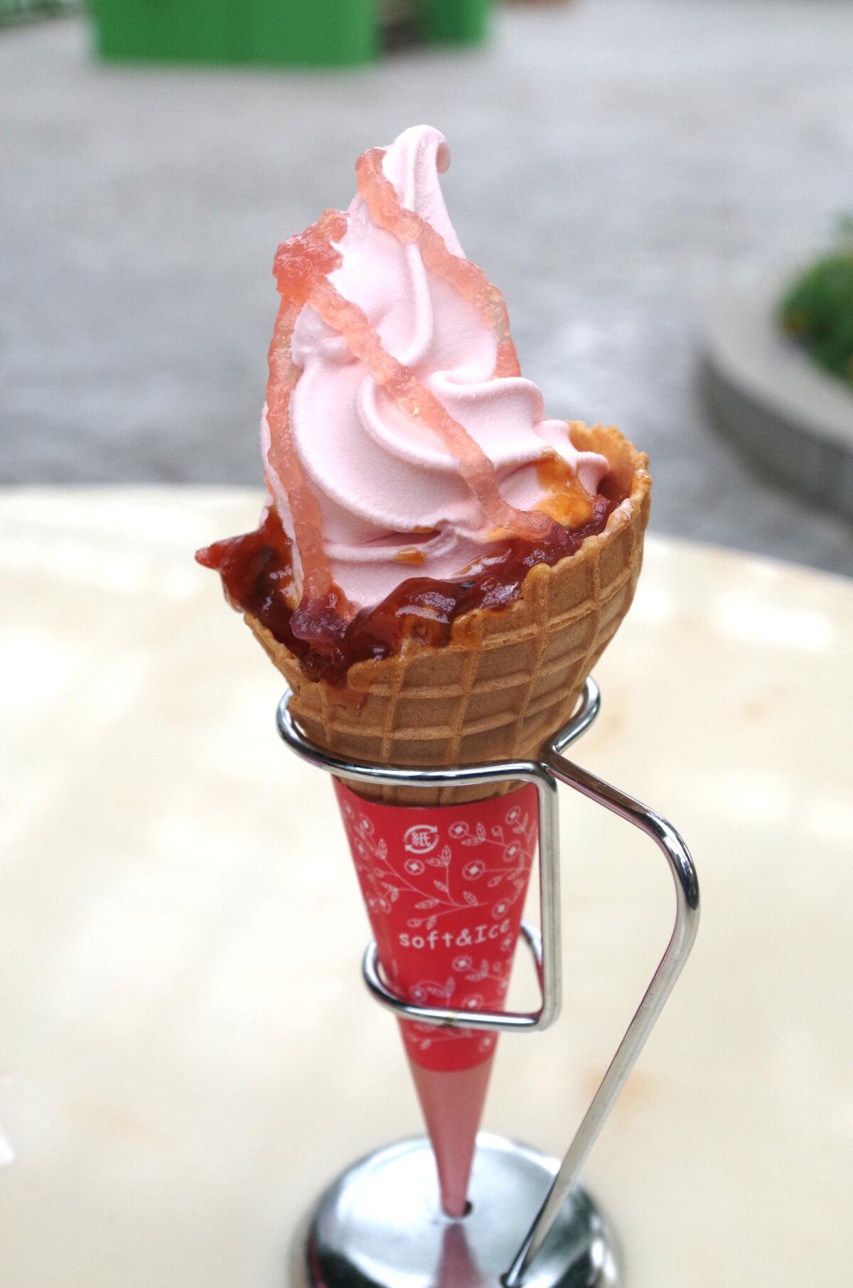 軽食もありますが、中でもおすすめは、バラのエキスをふんだんに使った「キングローズソフト(550円)」!