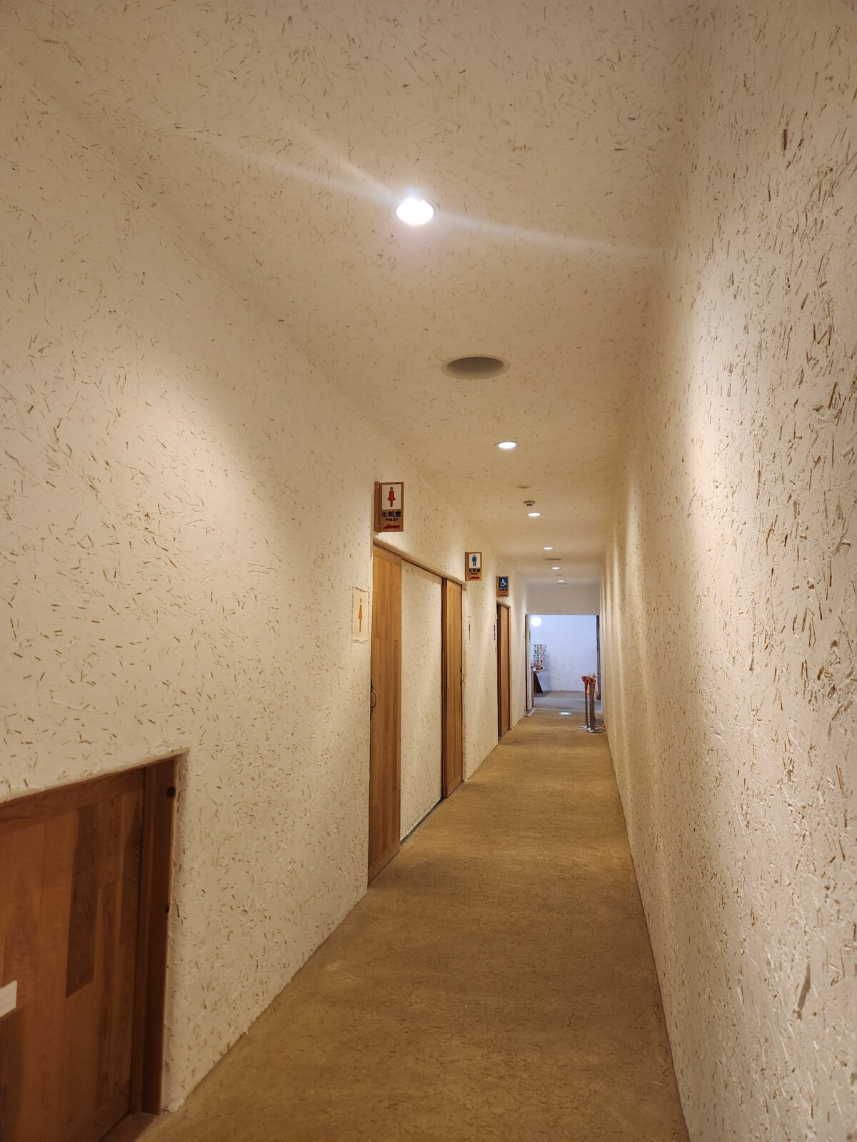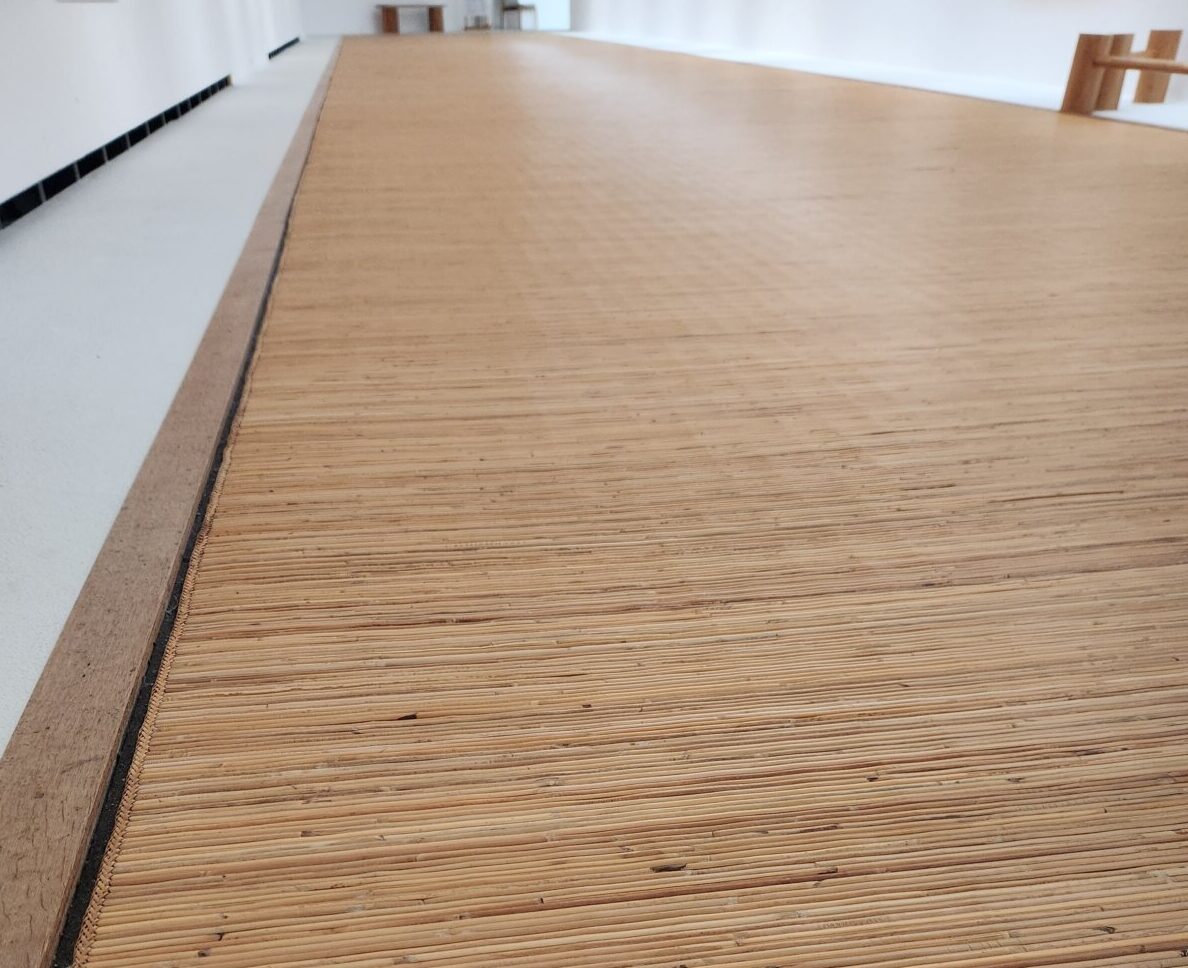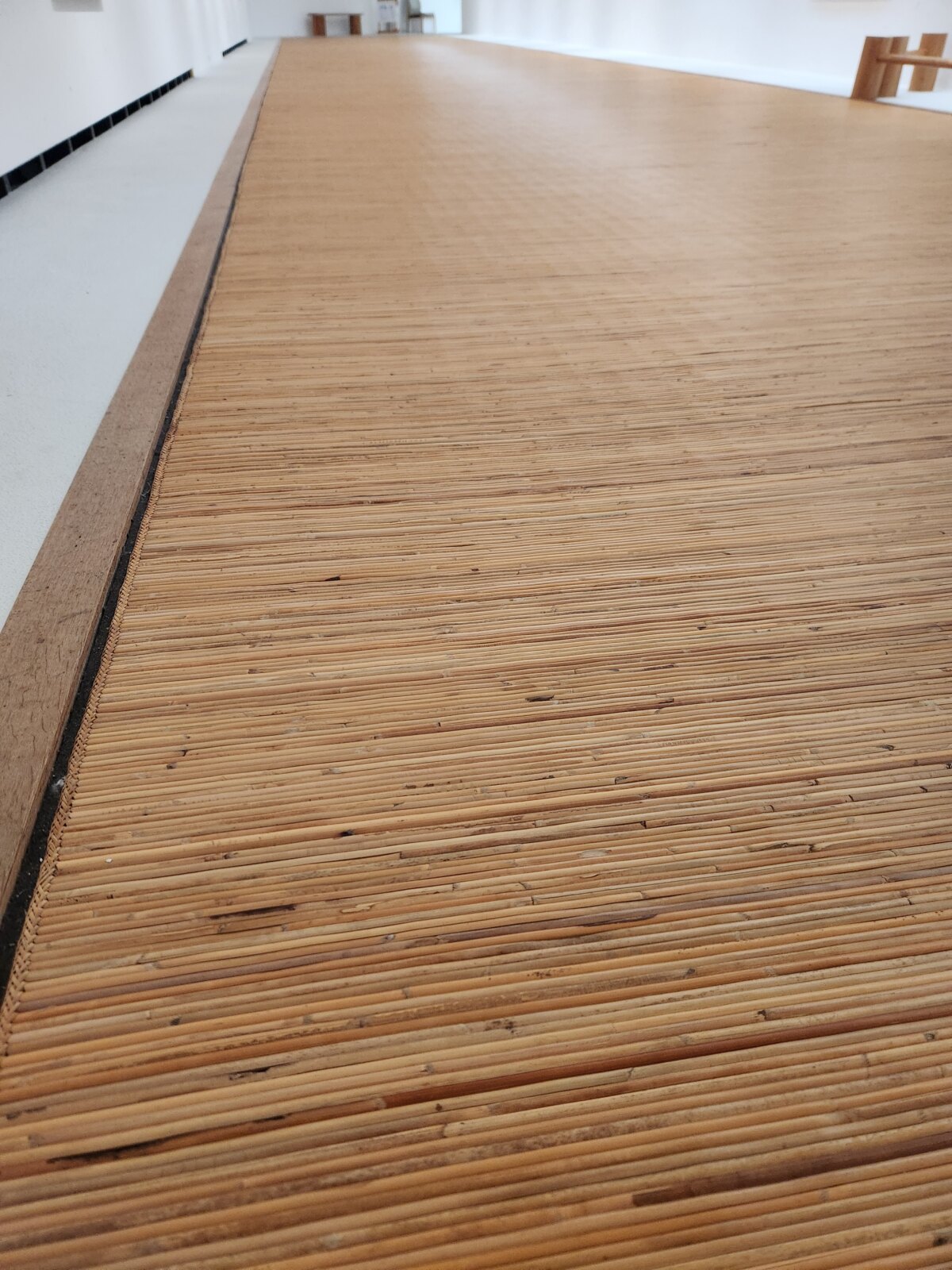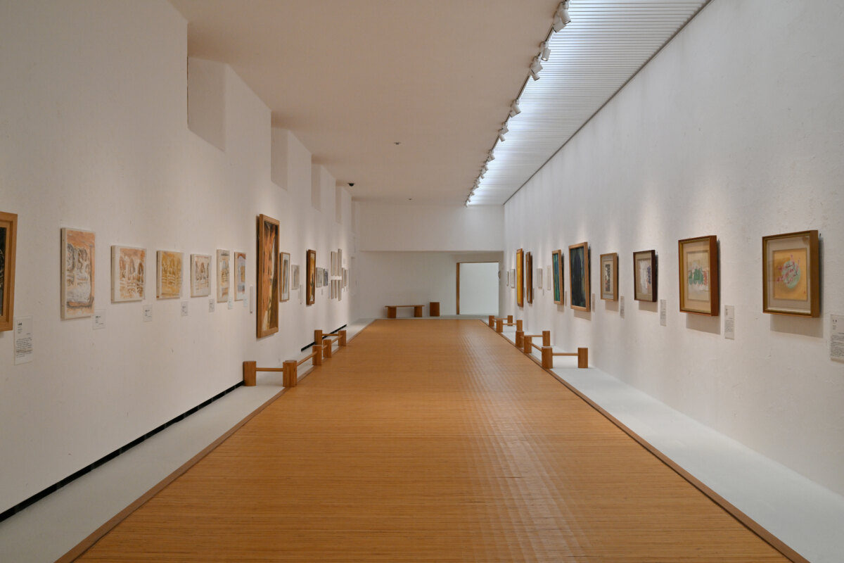 第1展示室は長方形の長い廊下のような造りになっており、壁は白い漆喰、床には「籐ござ」が敷かれているのが特徴です。