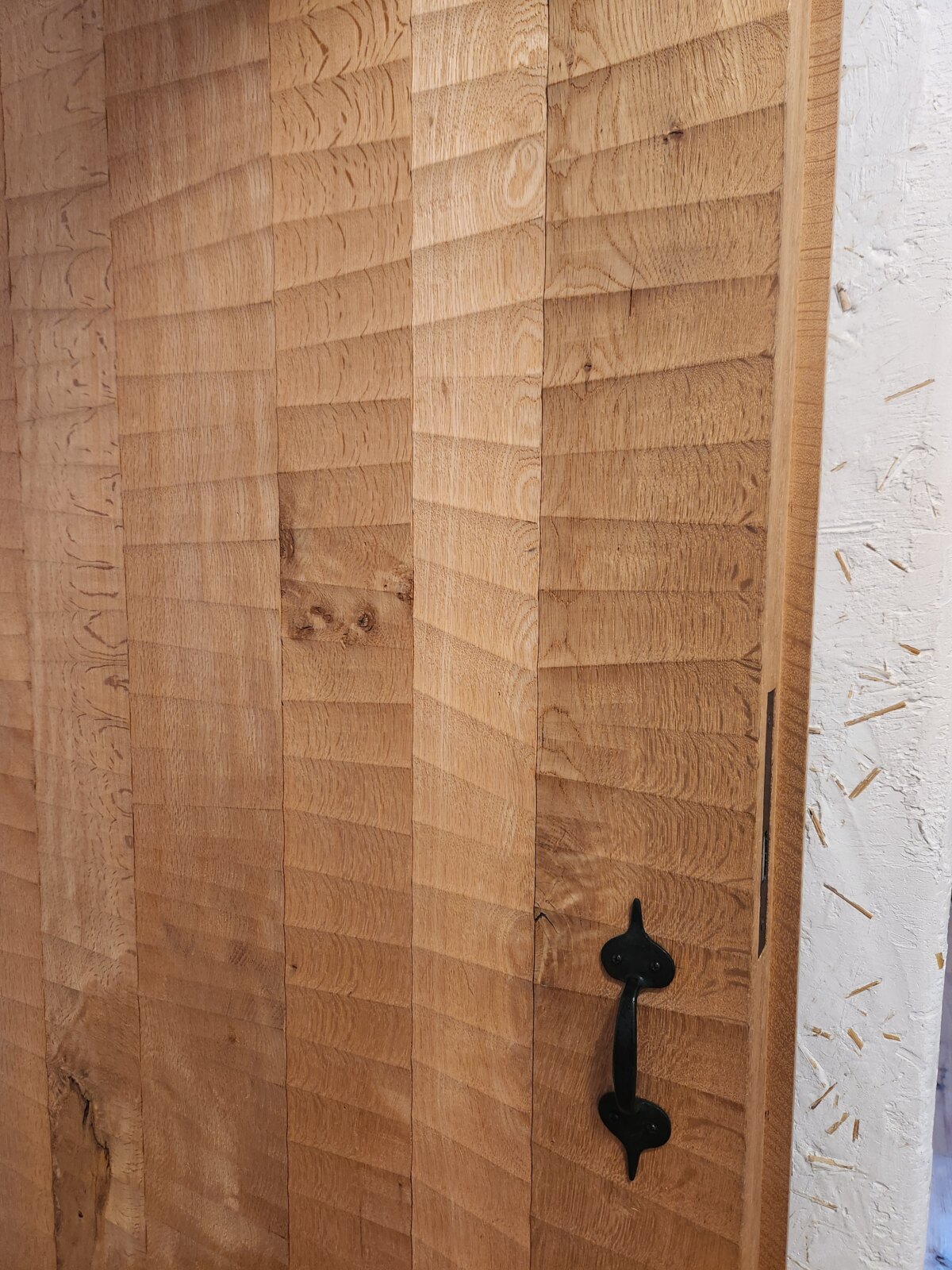 扉やサッシは曲面カンナで独特の風合いが施され、思わず触って質感を確かめたくなるほど唯一無二の造形美を生み出しています。