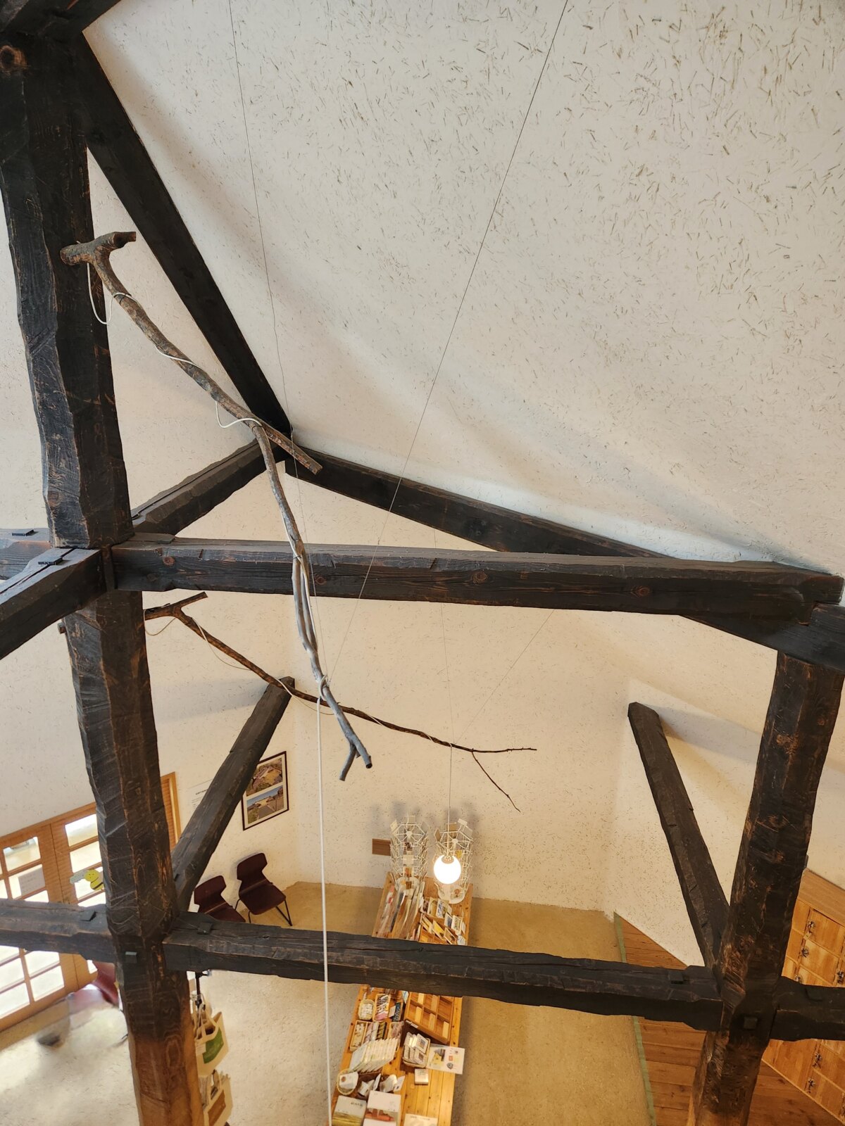 美術館2階の窓からは、この梁の様子を観察できるようになっています。