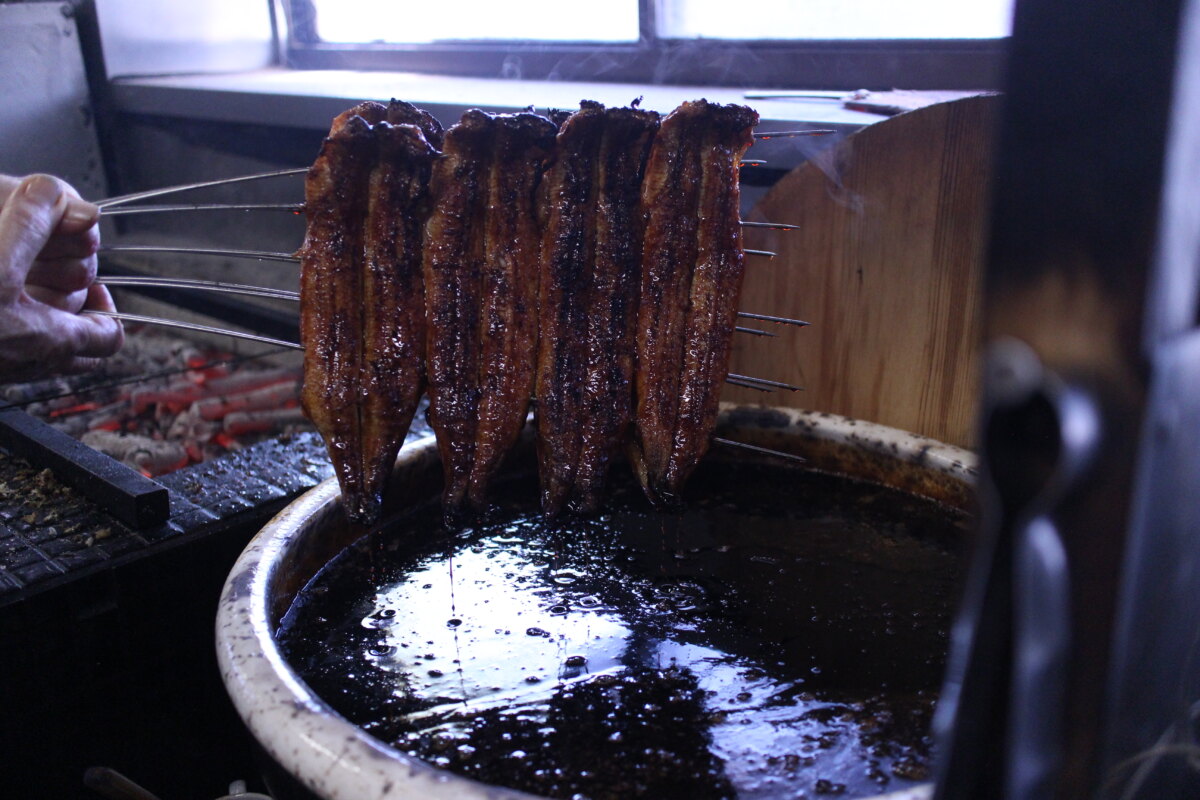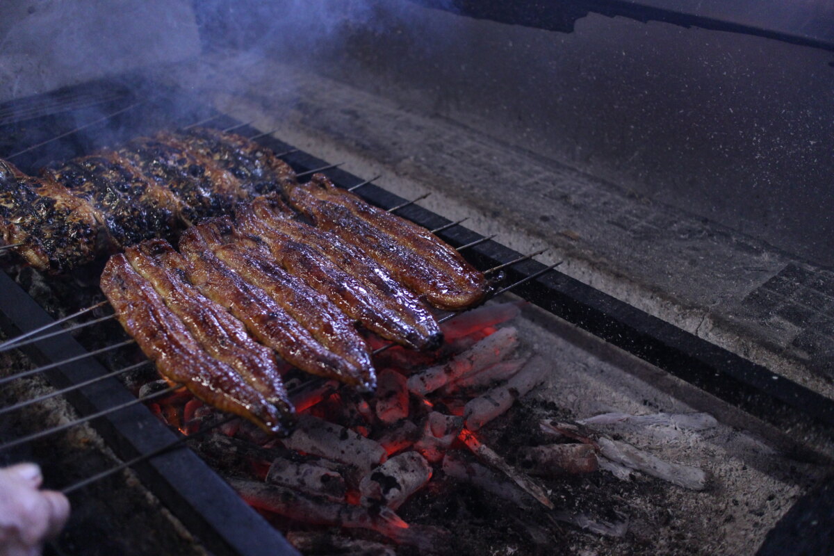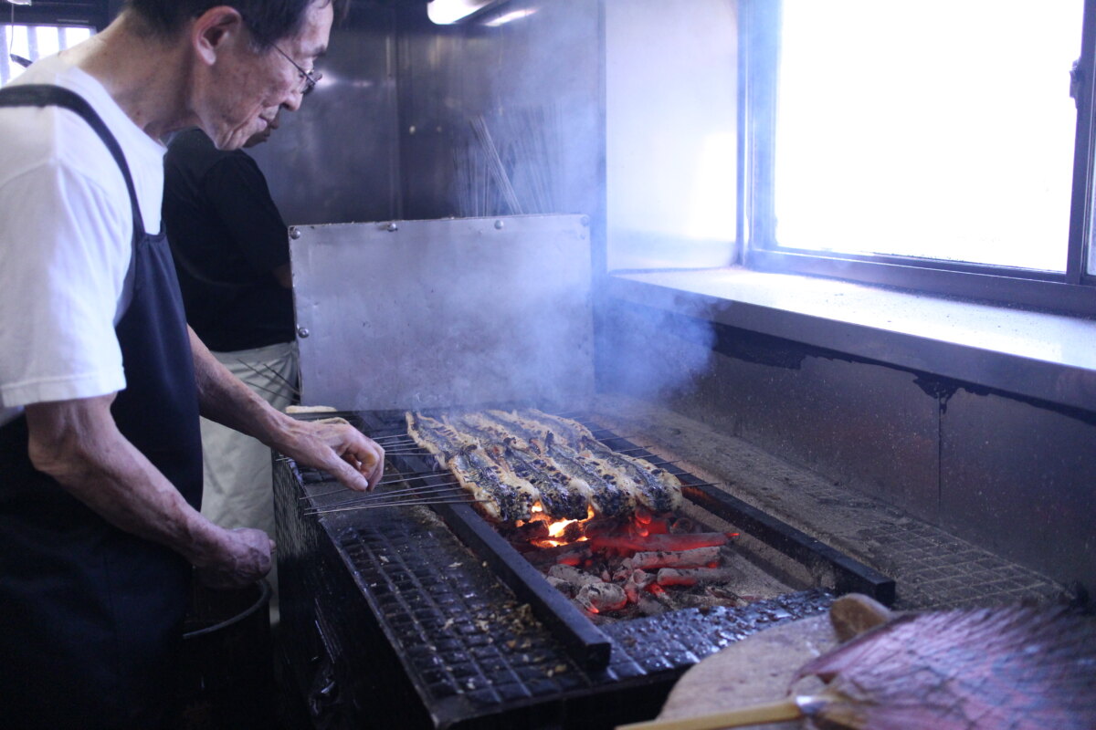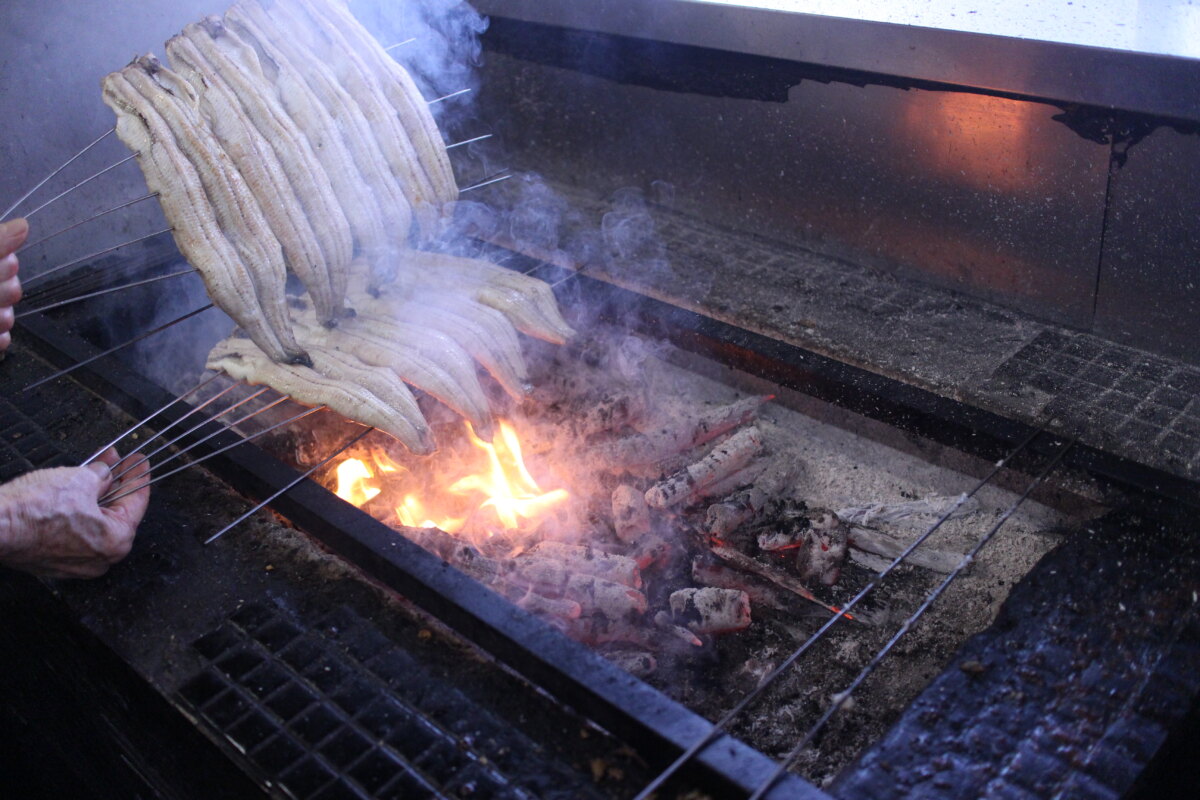 うなぎの脂がタレと一緒に炭に落ちることで、煙に食欲をそそる香りが混じります。
