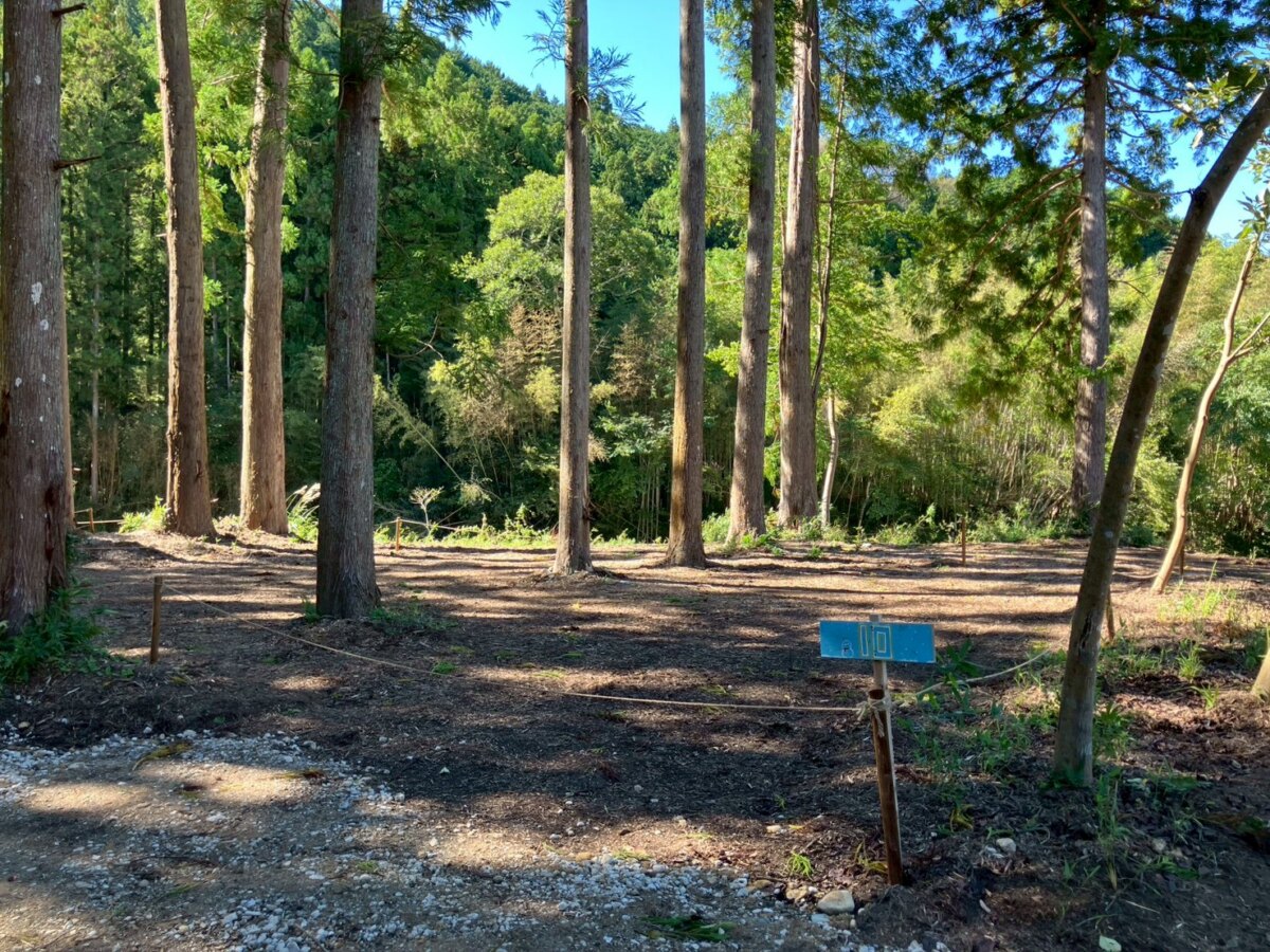 木々の香りと川のせせらぎに癒されながら、阿多古の竹チップが敷かれたキャンプサイトで贅沢な時間を過ごすことができます。