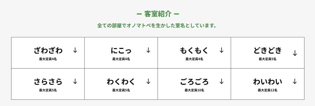 「atago feels」の8つの客室には、それぞれ個性的な名前が付けられています。