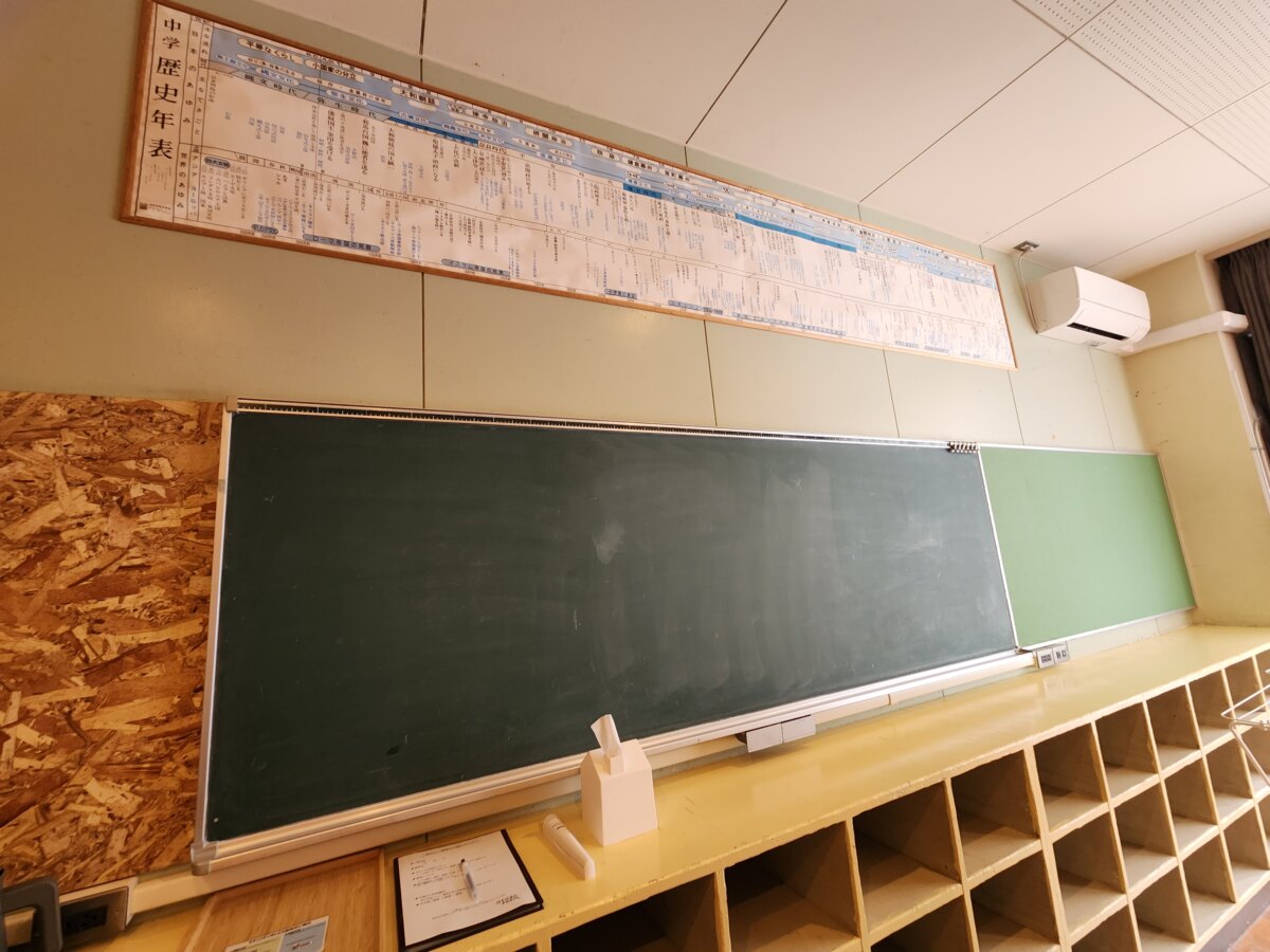 「なにもしない」最高のくつろぎ空間を楽しむことができます。黒板や年表の掲示物は当時のまま。