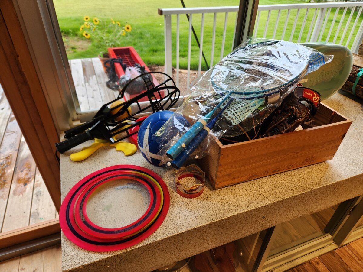 野外で遊べるように無料貸し出しのボールやバドミントンあり。貸し出しはフロントまで。