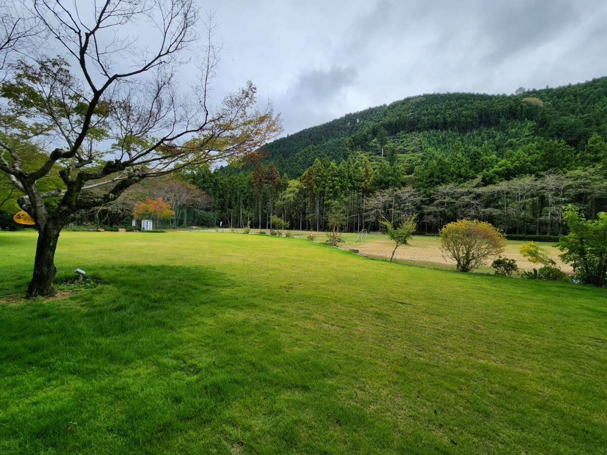 グランドの先にはキャンプサイトが設置されており、大自然の中でキャンプやバーベキュー、川遊びなど、ゆったりと過ごすことも可能!
