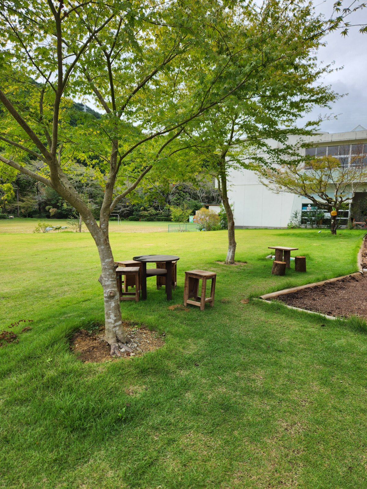 ホテルの窓からは山のふもとまで続く穏やかな景色が広がり、キャンプ場では杉のざわめきや川のせせらぎがそっと耳に届きます。