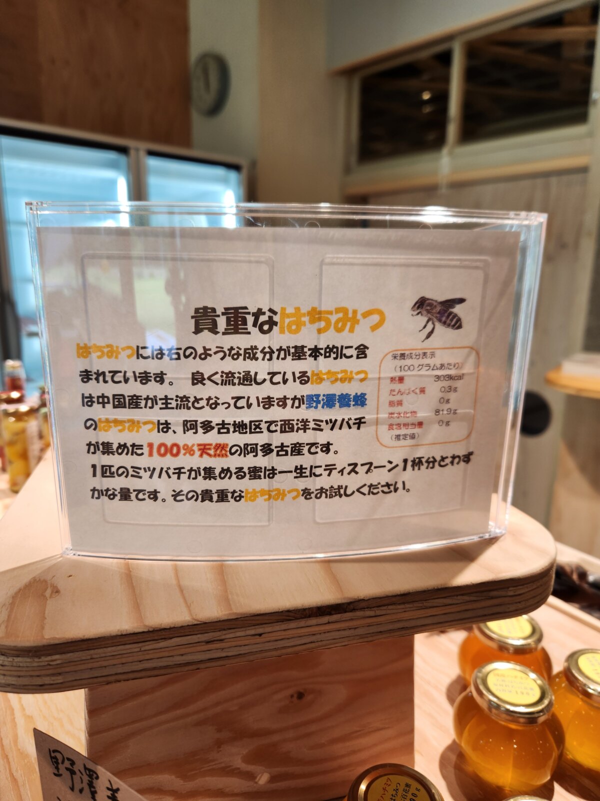 ①はちみつ:阿多古地区で西洋ミツバチが集めた100%天然のはちみつ
