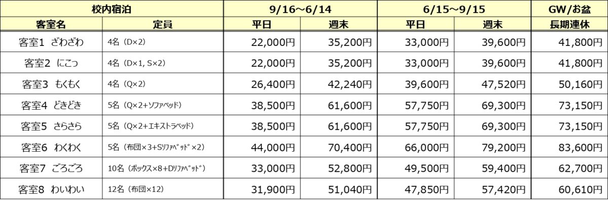 「どきどき」は校長室をリノベーション下宿泊ルーム。