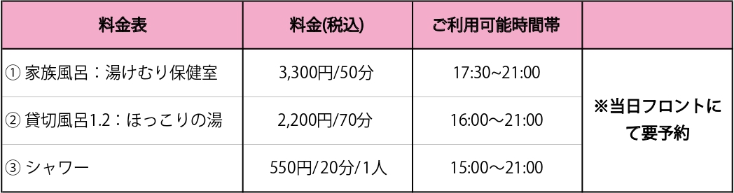 ②貸切風呂:ほっこりの湯(旧:理科室)
