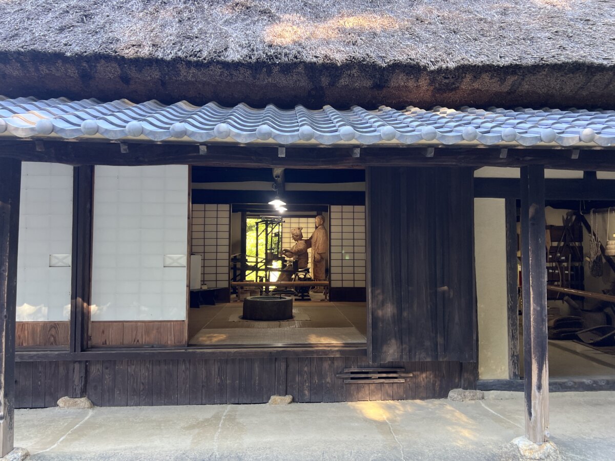 敷地内には、彼が生まれ育った茅葺屋根の生家や、夜な夜な研究に没頭した納屋が復元されており、生まれ育ったの風景が広がります。