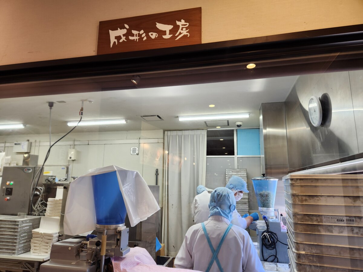 餃子工場併設の店舗で、ガラス越しに餃子の製造過程を見学することができます。
