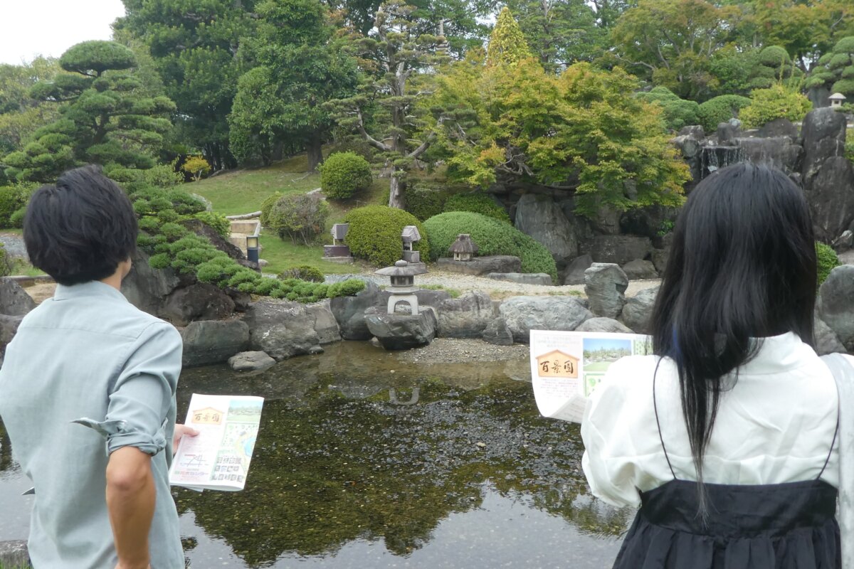 体験できること:日本庭園「百景園」のガイド付き見学と、盆栽の植え替え体験。体験後は持ち帰って育てることができます。