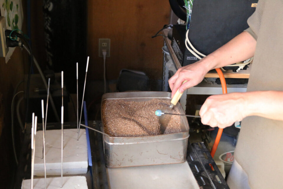 仕上げたとんぼ玉は専用の機材で冷却し、その日のうちに持ち帰ることができます。
