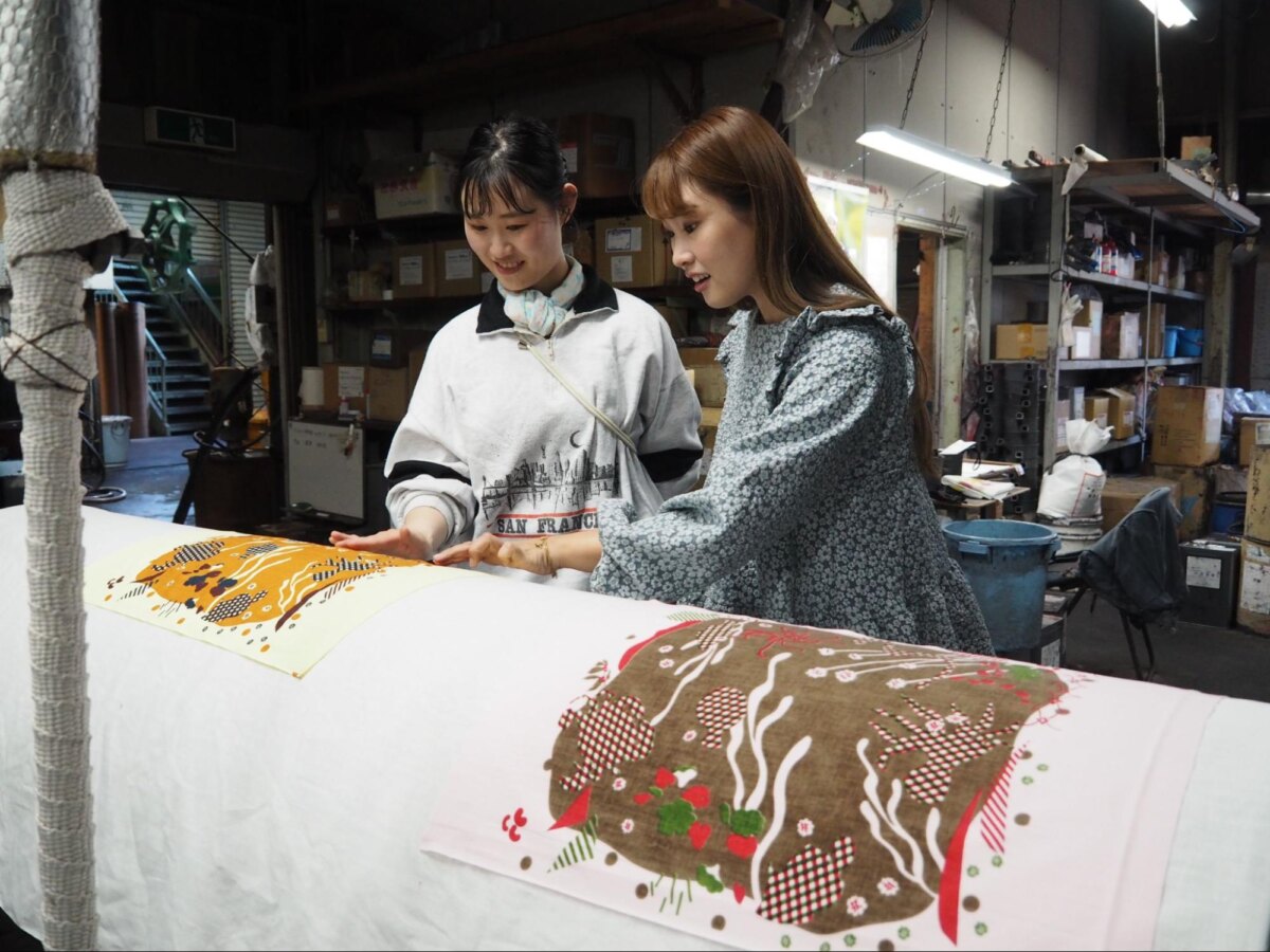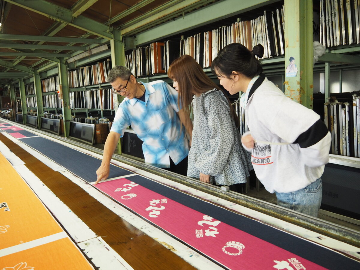 体験できること:歴史ある工場見学と、『手捺染(てなっせん)』という染色技法を体験しオリジナルハンカチを作る