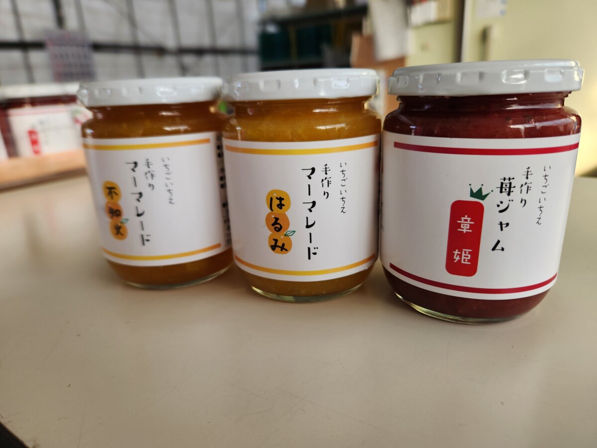 また、いちご園のお母さん手作り「無添加いちごジャム」や「地元の果実を使ったマーマレード」も人気。