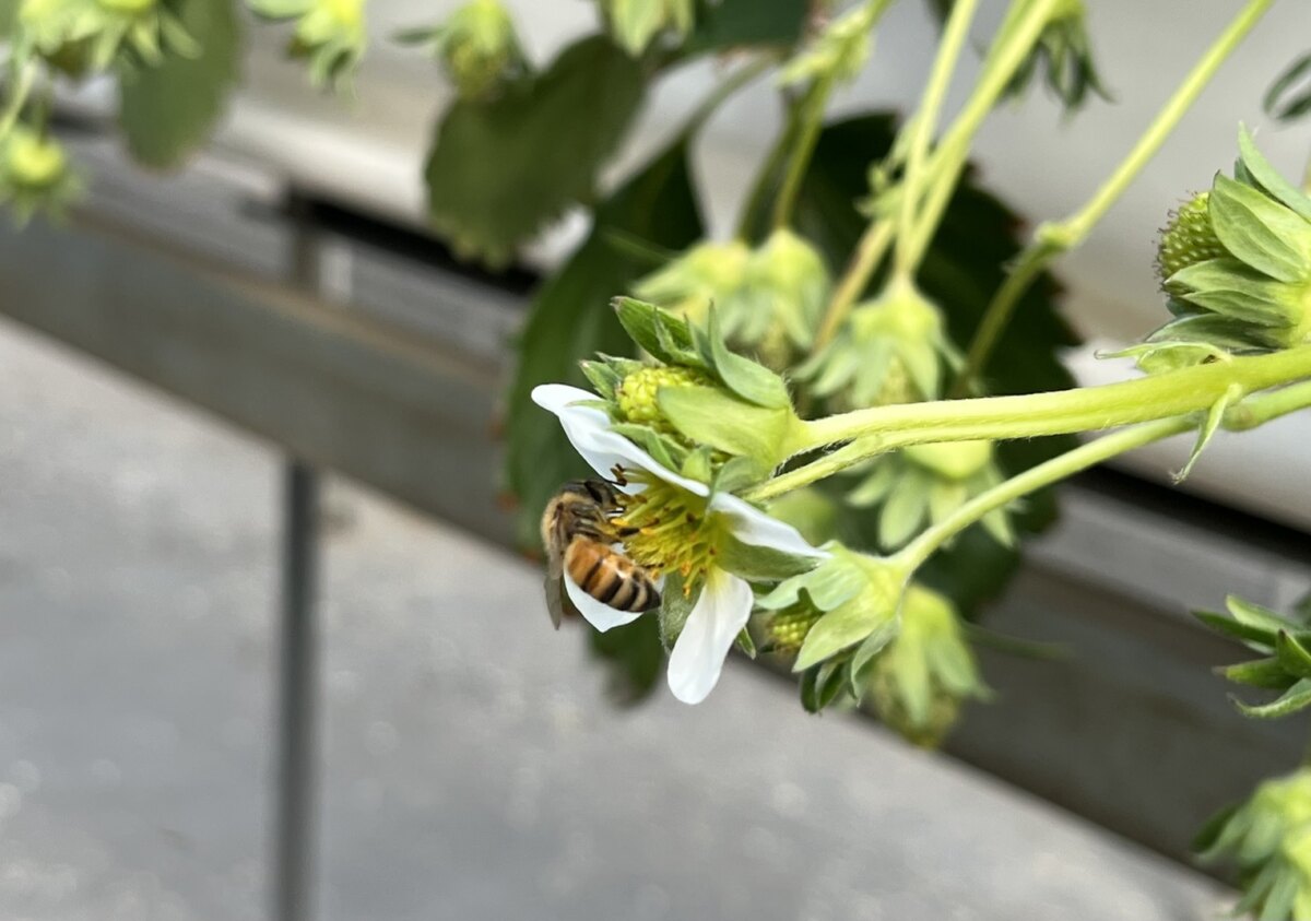 ハウス内は「ミツバチ」が受粉のための仕事をしています。