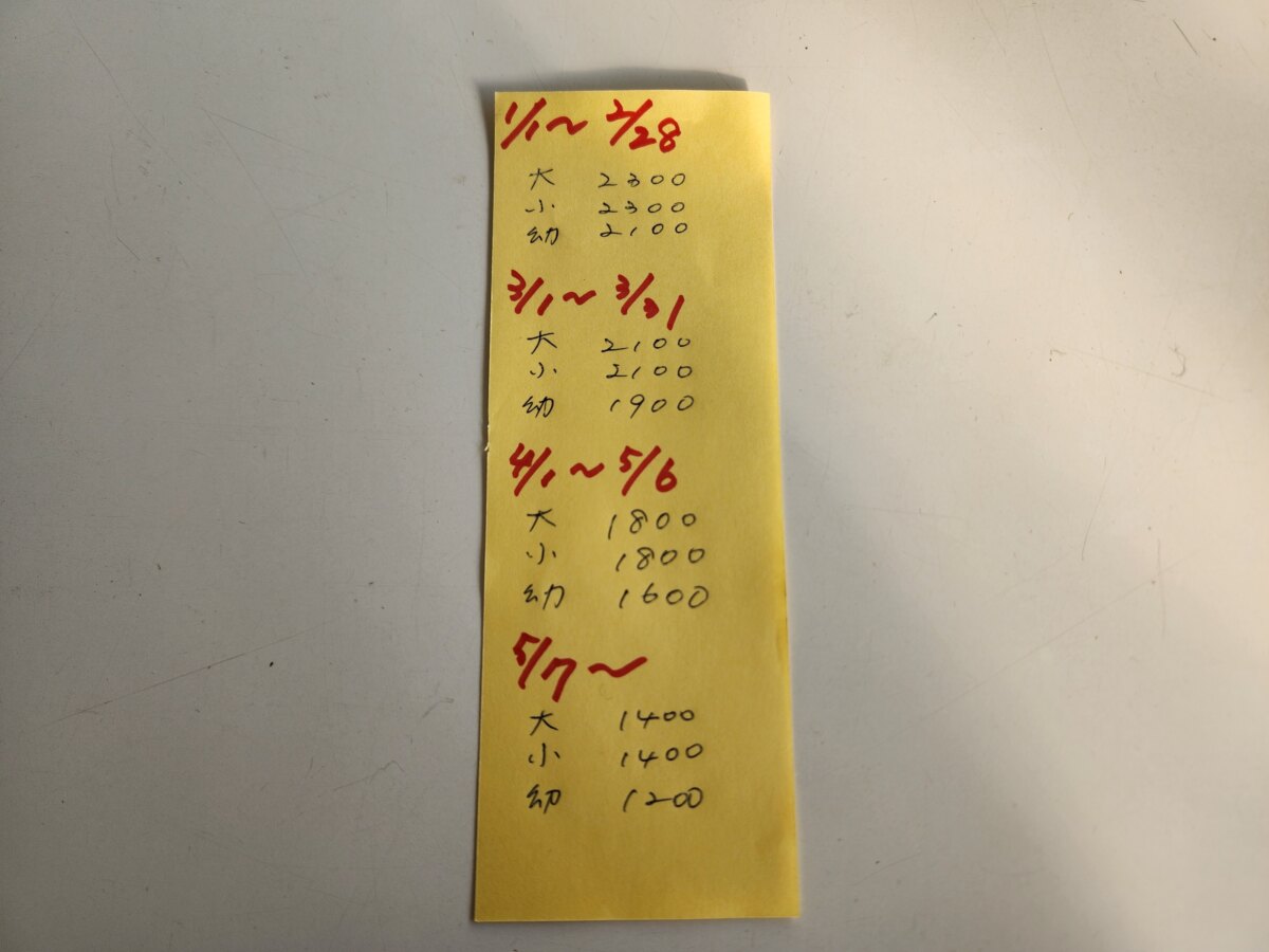 料金:時期によって変動あり