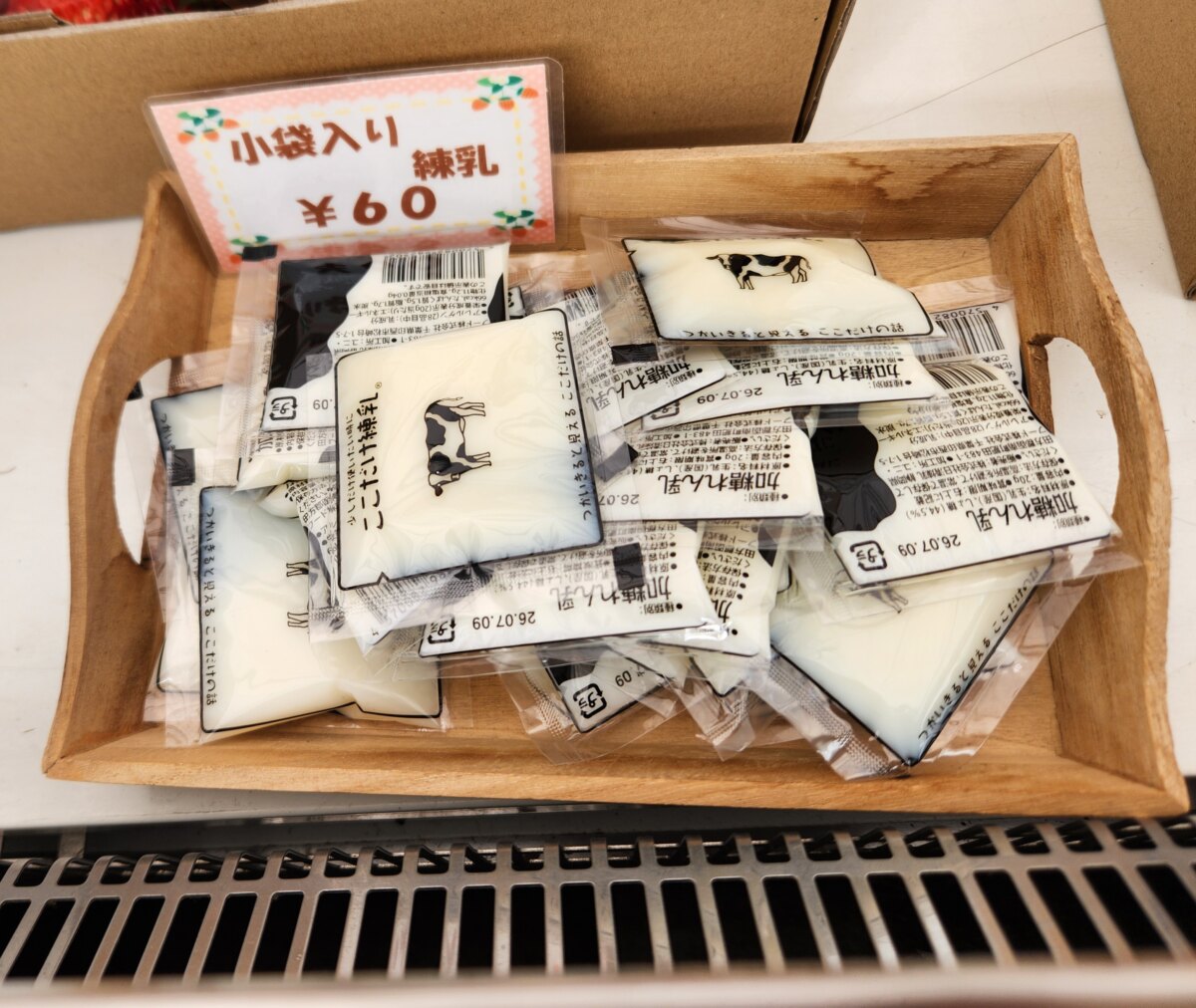「いちごいちえ」では、お土産のいちご用に使い切りタイプの練乳も販売されています。無駄なく使えるのはうれしいですね。